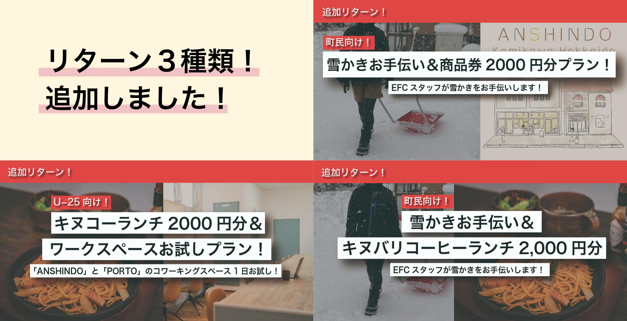 そこで、今回新たに「U-25向け」と「町民向け」のリターンを3種類追加しました!