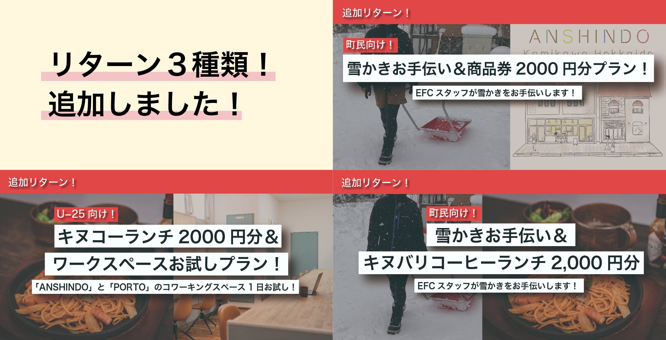 \ #みんなでつくるANSHINDO ムービー公開! /ANSHINDO PROJECTへの想い語ったムービーが公開されました!すでにプロジェクトをご存知の方も、ご支援いただいている方も、ぜひご覧いただければと思います!北海道のほぼ中央にある人口約3200人の上川町。 この町の中心市街地ある築60年以上の古いビルを改修して、「泊まれる複合施設」をつくるプロジェクトを始めました。 人口が少ない田舎町でも、楽しい仕事や豊かな暮らしを、自分たちで作っていけるようになりたい。得意なことがなくても、自信がなくても、やってみたいと思うことを口に出して言える町であってほしい。そしてそれを応援しあって、協力しあって、実現していける町であってほしい。この町で暮らす人たちが、これからも誇りを持って暮らしていけるように。この町で生まれ育った子どもたちが、胸を張って「上川町出身です!」と言えるように。ANSHINDOプロジェクトはそんな思いで、今の自分たちが出せる最大限を出し切って挑む、覚悟のプロジェクトです。\ 北海道新聞さんにプロジェクトをご紹介いただきました! /今朝(11月15日)の北海道新聞にANSHINDO PROJECTについて掲載していただきました!さっそく「新聞見たよ!」というお声もいただいています!ここからさらにたくさんの方々に上川町のこと、ANSHINDOのことを知ってもらえるように頑張ります!取材いただいた大井記者ありがとうございました!\60%達成!クラウドファンディングは今月30日までです!/今日までに114名の方から、1,806,523円のご支援をいただきました!ご支援いただいたみなさん本当にありがとうございます!残り40%です!引き続きご支援&シェアよろしくお願いします!