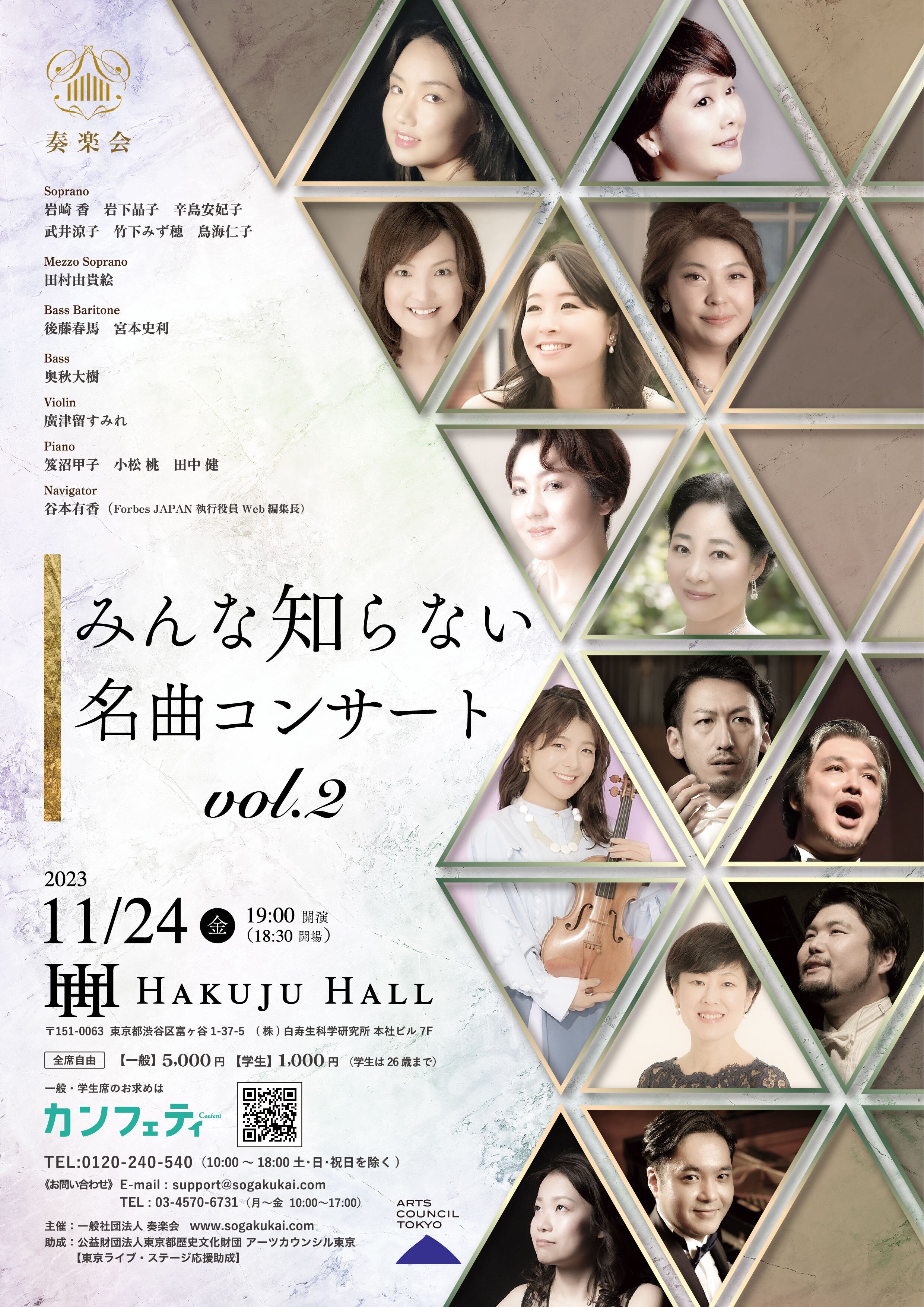 日本語の訳詞もありますし、ナビゲーターのフォーブス・ジャパン・ウェブ編集長、谷本有香さんが、お客様皆様の視点に立ったとても分かりやすい解説と歌手へのインタビューで曲の聴きどころをお伝えしながらコンサートが進行します。予習の必要はまったくありません。