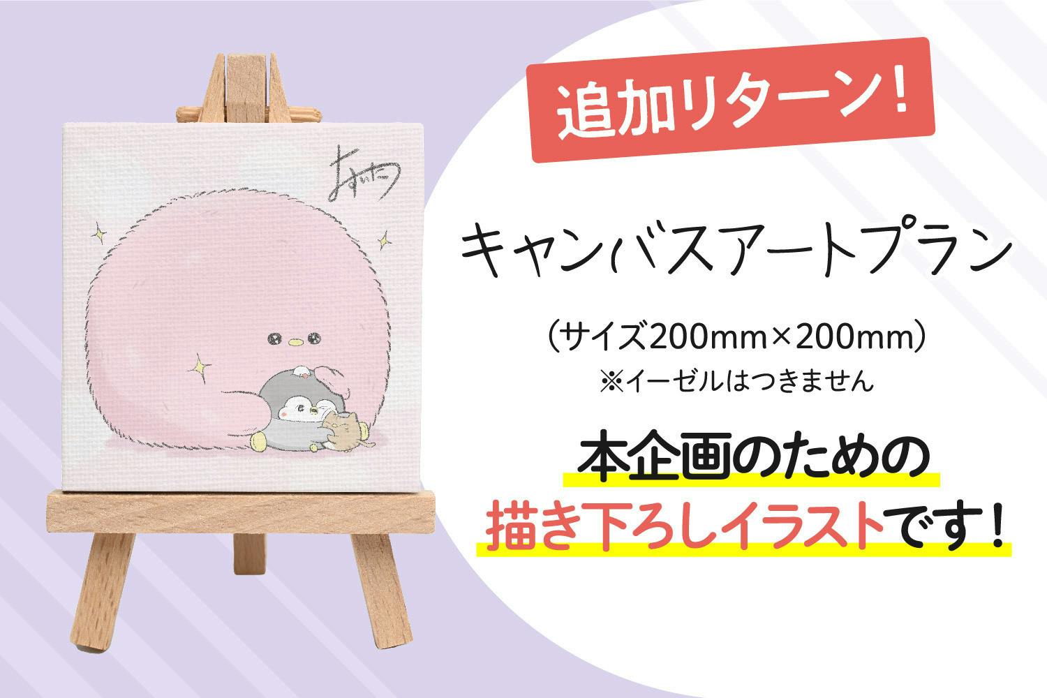2023/11/17 15:00CAMPFIREスタッフです。みなさま、たくさんのご支援本当にありがとうございます!キャンバスアートプランを追加いたしました♪飾りやすいサイズと柔らかなイラストが素敵なアイテムです。クラファン企画のための書き下ろしになっておりますので、この機会にぜひご検討ください!残り、16日になりますので最後まで応援よろしくお願いいたします!CAMPFIREスタッフ もっと見る