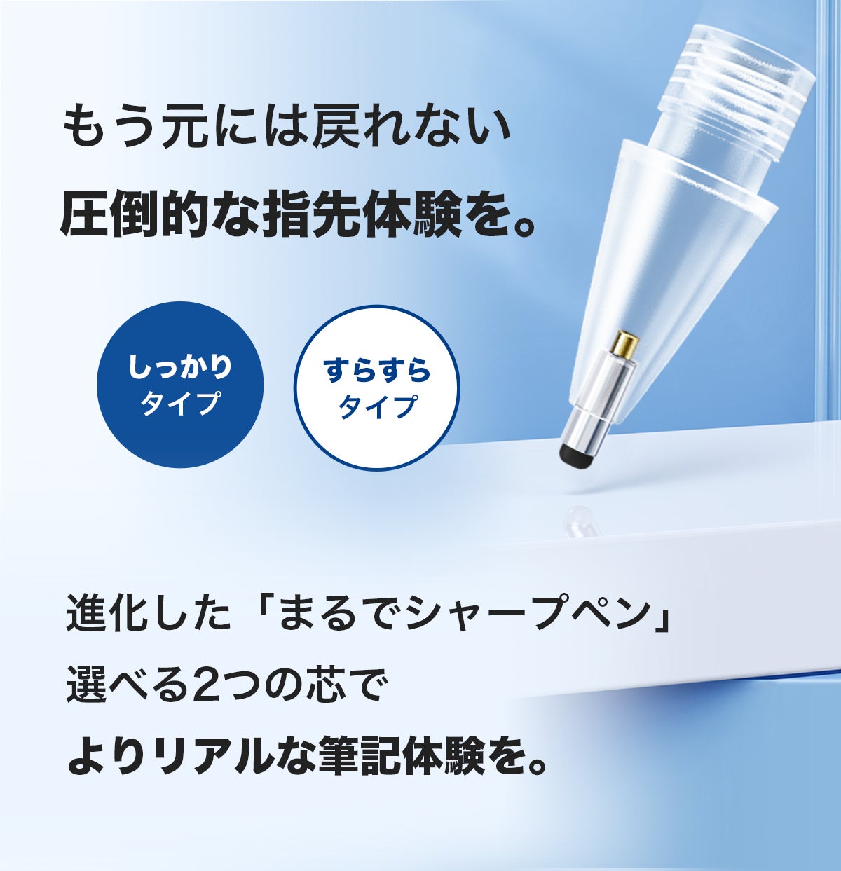 「よりリアルな筆記」を追求するために、2タイプの芯を開発しました。あなたに合った芯を選んで、iPadでの筆記が、より楽しくなること間違いなし!