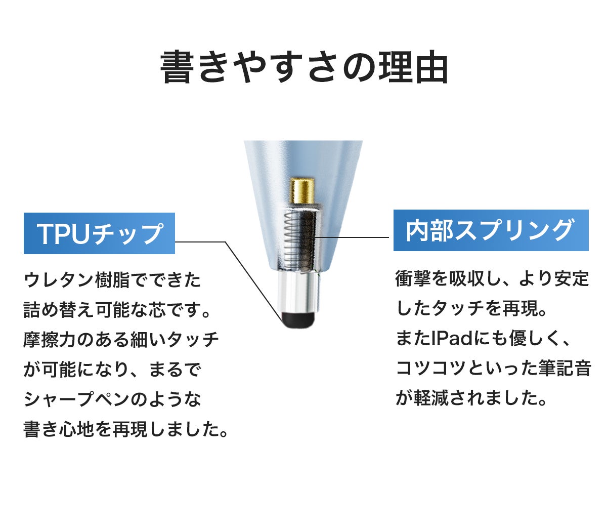 TPUチップと内部スプリングにより、安定した書きやすさを実現しました。