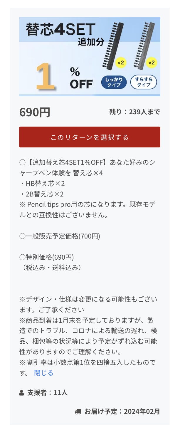 長く使いたい!pencil tips proに期待している!といった方には、是非とも【追加替え芯4SET1%OFF】の購入をオススメいたします!