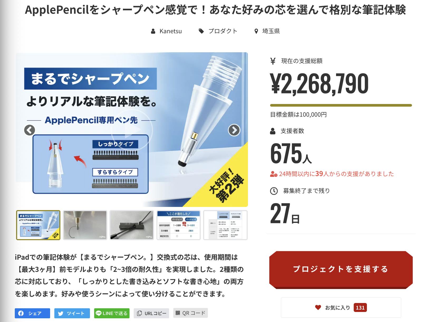 【ApplePencilをシャープペン感覚で!あなた好みの芯を選んで格別な筆記体験】へのご支援・興味を持って頂きありがとうございます。