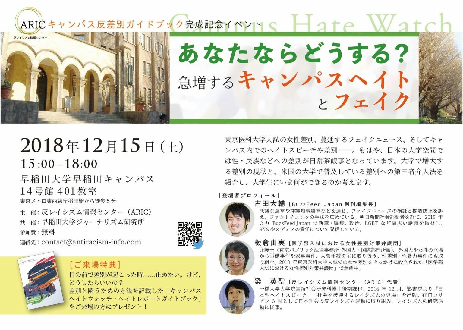 主催:反レイシズム情報センター(ARIC)、共催:早稲田大学ジャーナリズム研究所