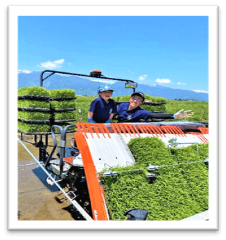 安曇野から農業の未来見据え、多岐にわたる活動に尽力され若手のリーダー的存在です。北アルプス常念岳のお膝元浅川さんちの作業風景です。江戸時代から代々続く米農家さんです。