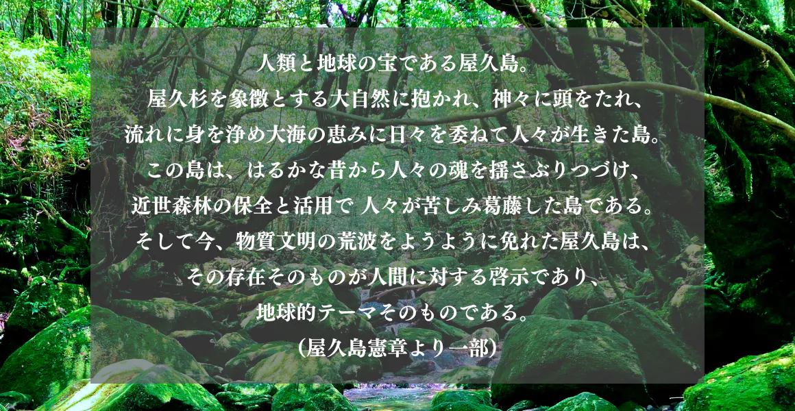 屋久島の島づくりの指標である屋久島憲章には以下の文章が記載されています。