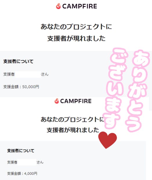 昨日またまた4000円と50000円の高額プランのご支援をいただきました!