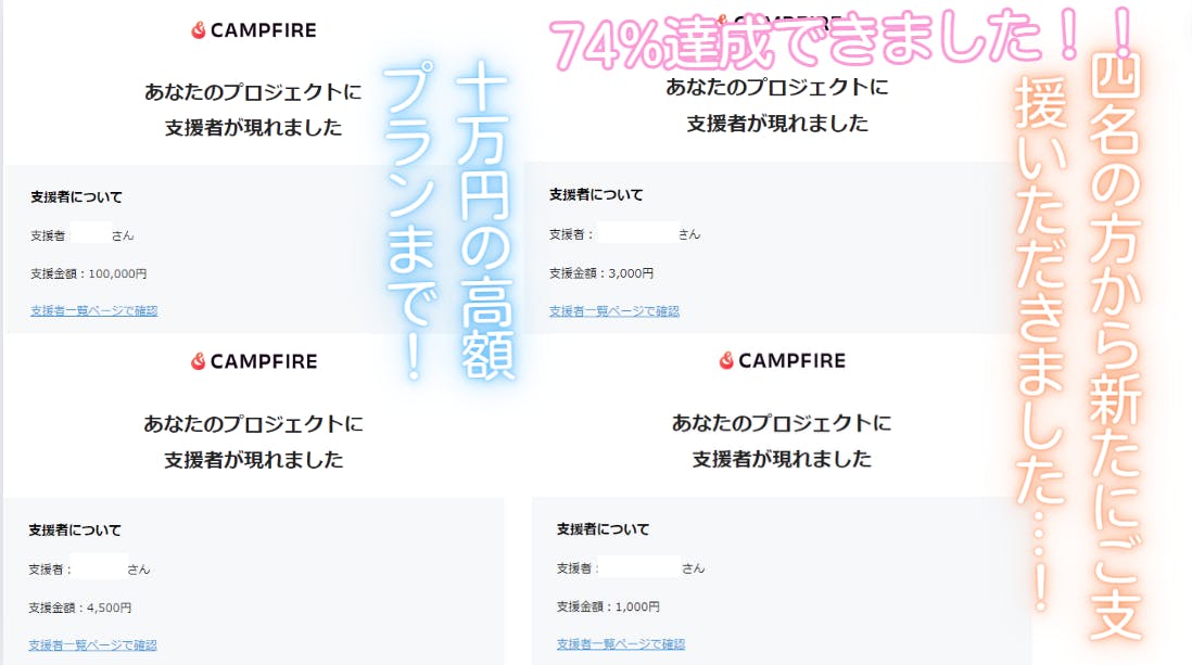 しかもしかも…100000円のスーパー高額プランのご支援もいただきました!!100000円プランのご支援をいただくのは二回目なのですが、絶対に一回きりしかないって思ってたから