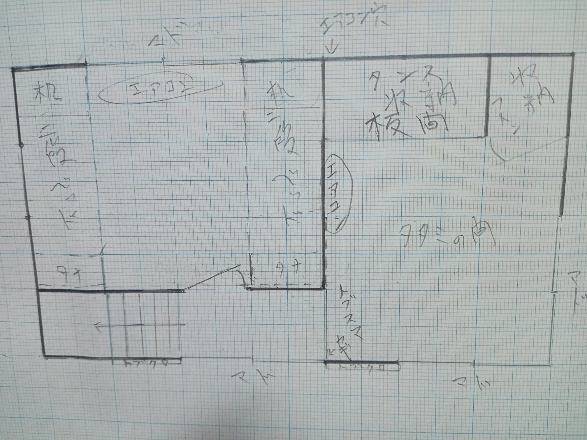 見積もりの為に大工さんに渡した図面(左が北)