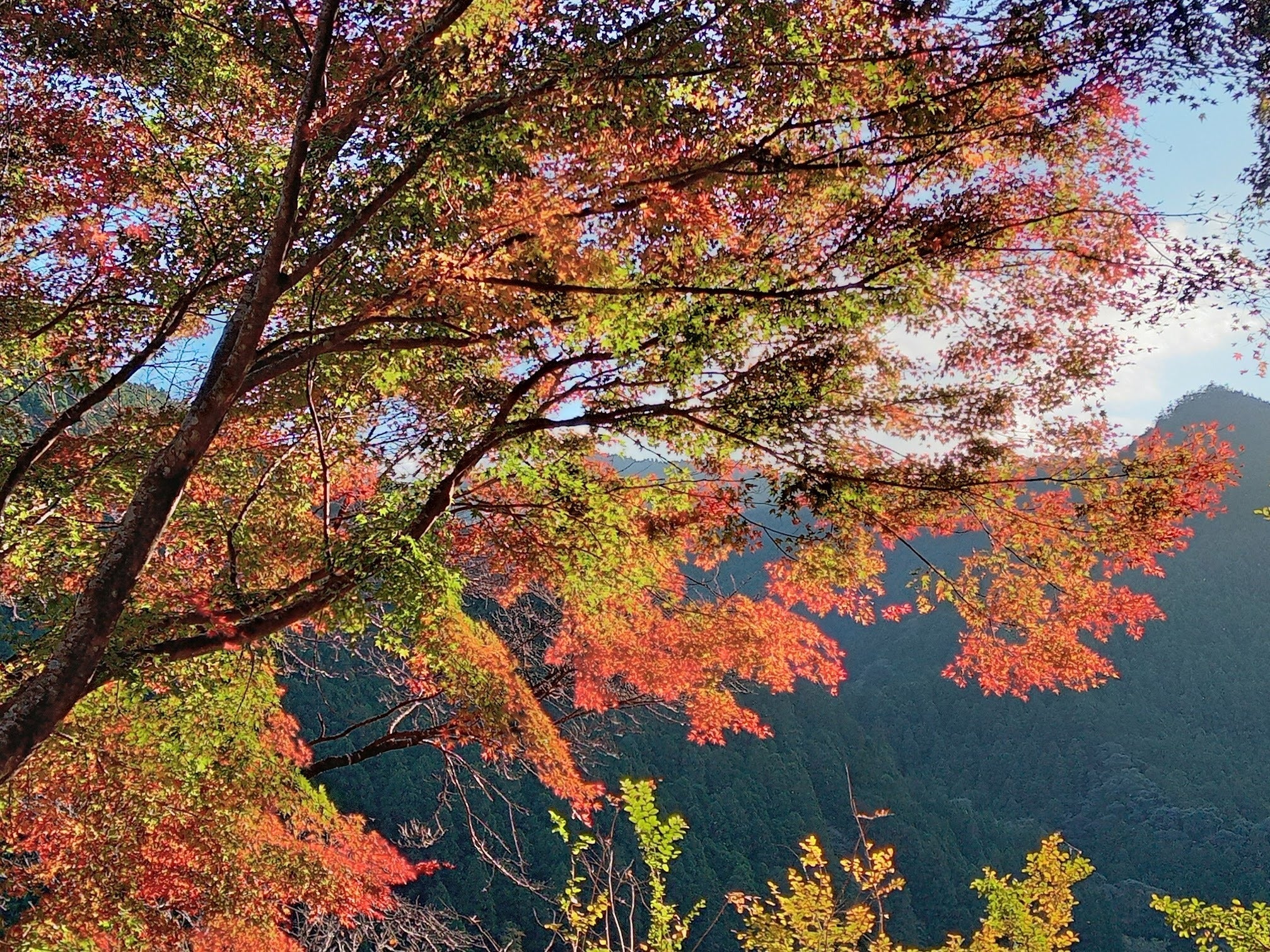 裏山の実生柚子と紅葉