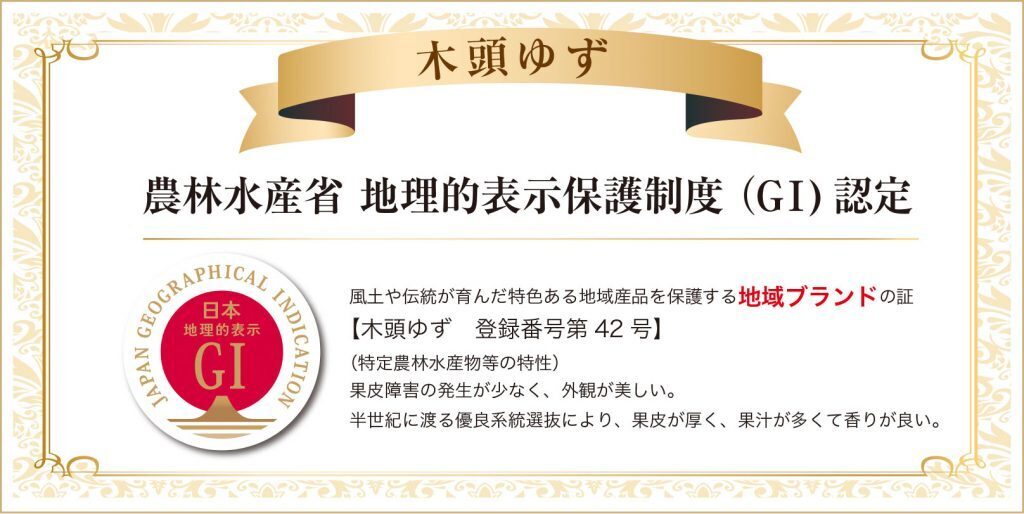 *木頭ゆずは農林水産省地理的表示保護制度(GI)により認定された那賀町の地域ブランド産品です。