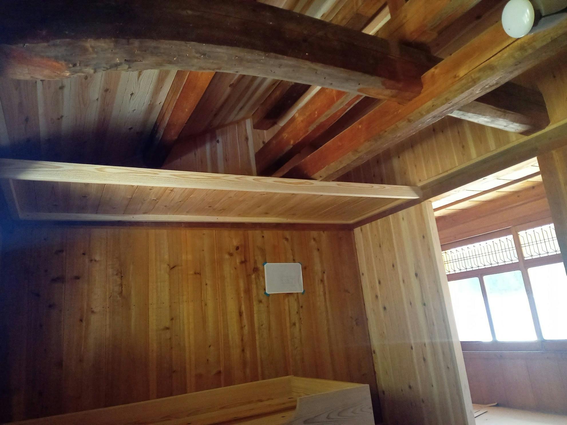 二階宿泊室は二段ベッドの予定でしたが、天井高の関係で移動できるベッド二つに変更し、空いた床スペースに布団を敷くことにしました。