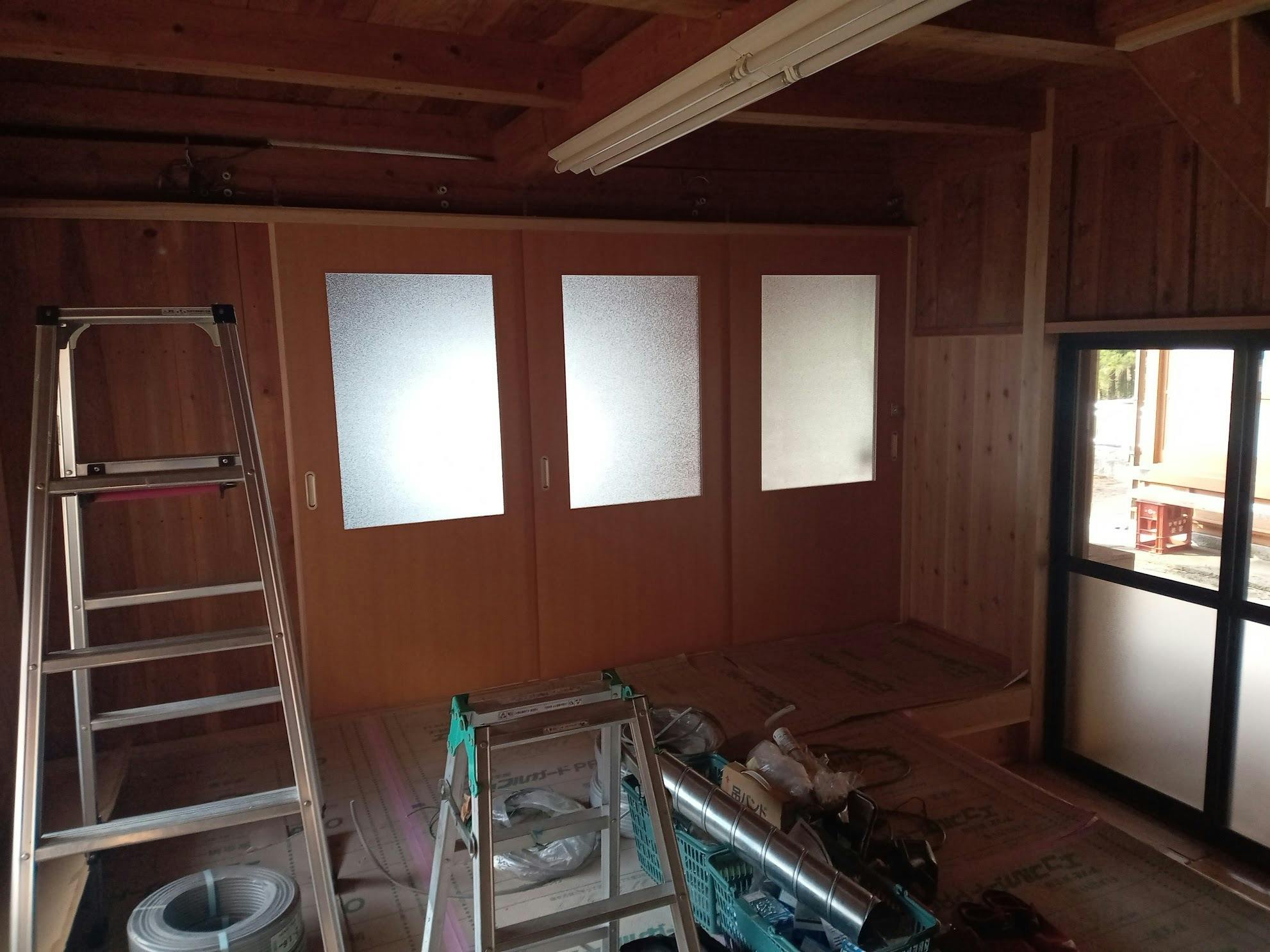 建具屋さんの仕事もほぼ終わり、電気工事と畳の完成を待てば納屋の改修は終わります。