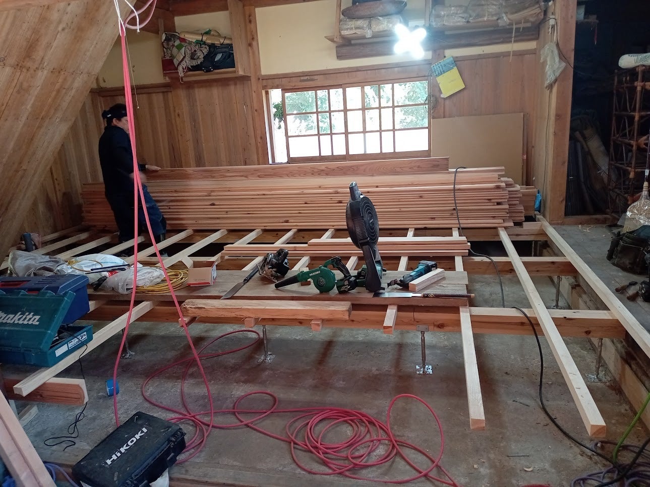 納屋二階の工事(窓は大きくします。)