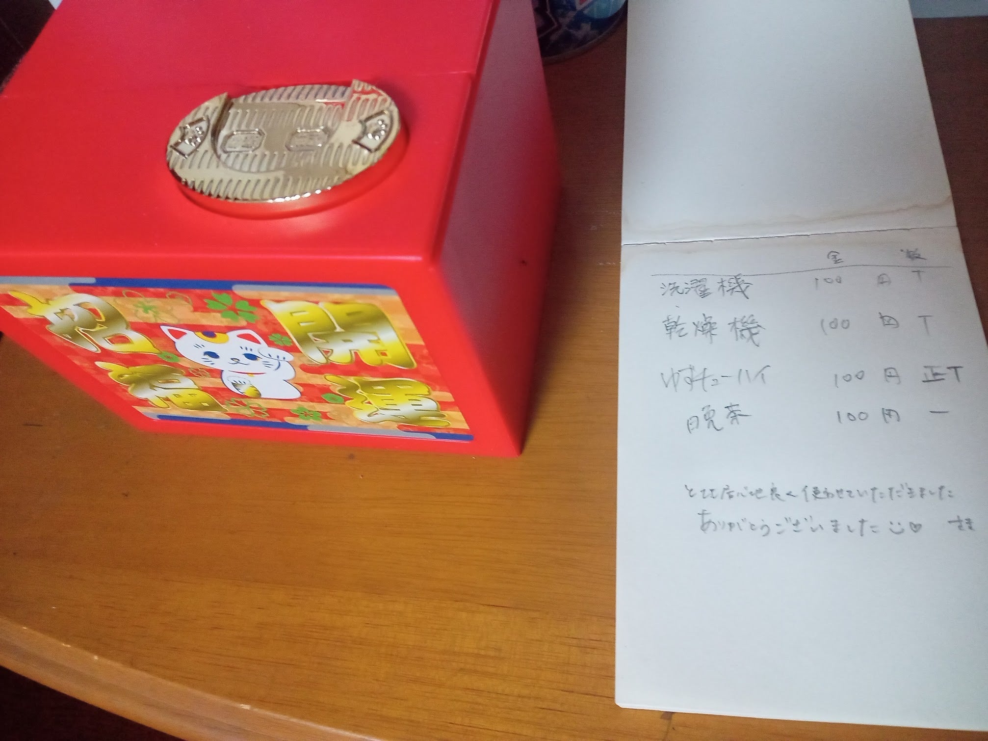 洗濯機、衣類乾燥機は有料で一回100円。その他の備品(例えばOHP、コピー機等)の使用は一日1,000円を基本に、消耗品費も考慮して個別に使用料を設定したいと考えています。