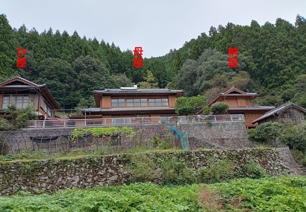 建物向かって右から納屋、母屋、ひ屋(戸建の隠居部屋)
