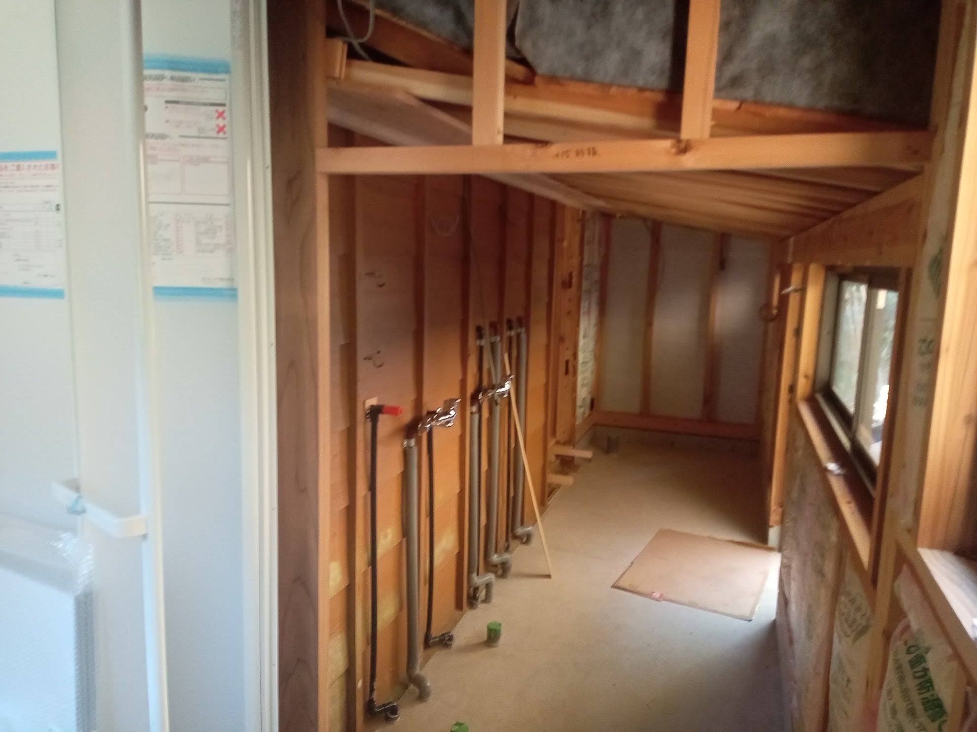 納屋一階の工事(手前の柚子選別作業場は畳敷きになります。)