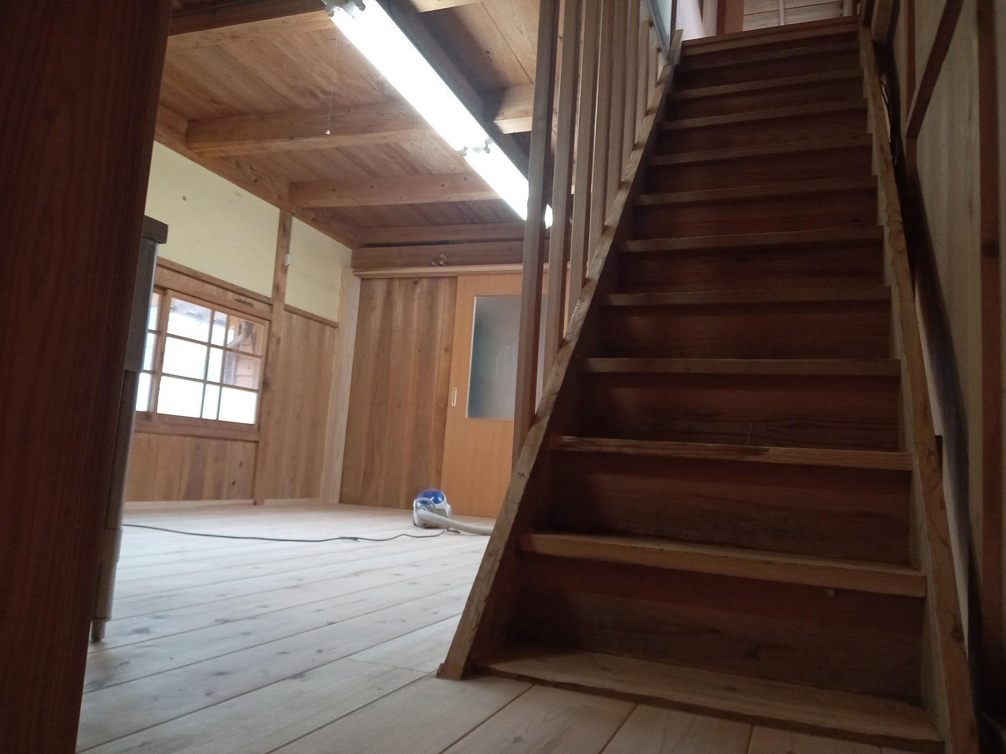 2024/02/29 12:28私のクラウドファンディングも後12時間で終了です^^。達成率は10%で終わりそうですが、26万5千円も支援頂く結果となり、大変ありがたく感じております。大工さんへの支払いを昨日済ませました。今日の電気工事が終わり、支援頂いたお金から手数料を除いた20万円ほどで畳みとカーテンを調達すれば、私の「ふるさと水崎を消滅集落にしたくない! 限界集落発TAKATAHANKプロジェクト」の箱物部分が完成いたします。板の間の養生シートを剥がしました。これまでの活動報告では隠れていた杉板の床です。畳の間との仕切り戸を開けた状態です。 もっと見る