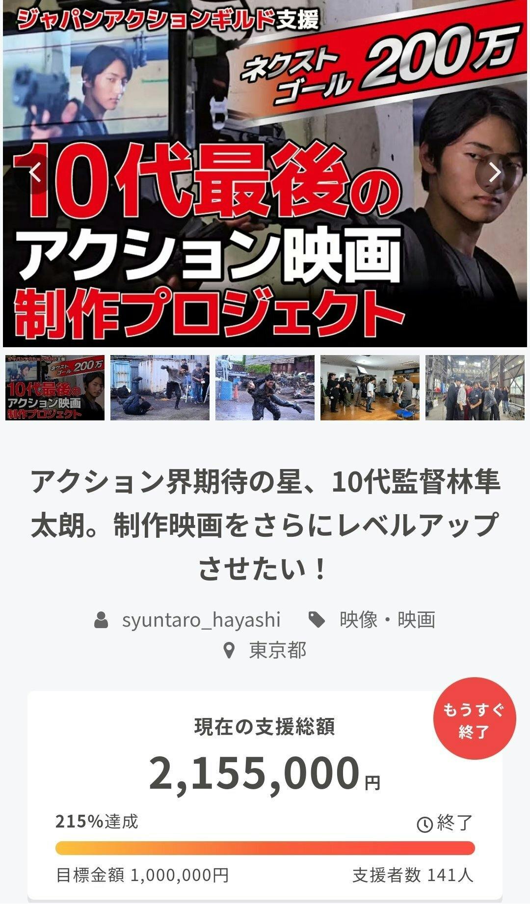 2024/04/02 17:05クラウドファンディング終了致しました!215万5000円と141名の方々の皆様にご支援をいただきました!!!本当に本当に皆様大好きです。皆様からいただいた支援金をもとに、できる限りこの作品を大きくしていきたいと思います。100万円と200万円の達成目録である、大人数アクションとワイヤーアクション。必ず良い映像にして見せますのでよろしくお願い致します!141名の思いを背負っていることを自覚し更に気持ちを引き締めて、追加の撮影も頑張ります!!!リターンの期日に関しまして一部少し遅らせていただく可能性がありますので追って皆様にご連絡いたします。是非今後ともどうぞよろしくお願い致しますm(_ _)m もっと見る