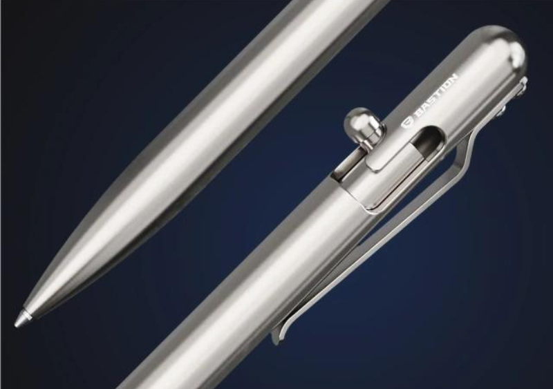 2017 年、Bastion社 CEO のMike Navitskyは、ボールペンにライフル銃で銃弾の装填に使われている、堅牢なボルトアクション・メカニズムを使う、と言うユニークなアイデアを思い付きました。この堅牢なメカニズムは信頼性が高く、満足の行く一連のペンが誕生する事となりました。素材はチタンの他、多種類の素材を用いられています。