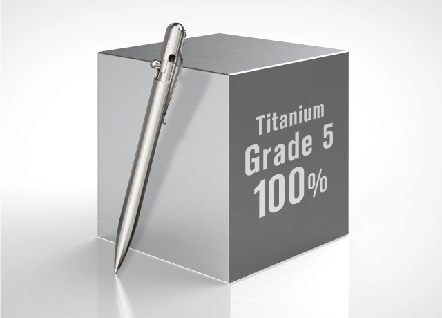 A.ボールペンのボディ、クリップ、スクリュー、全てにチタンGrade5を使用しています。他社は、やや柔らかいチタンGrade2や他の金属を一部に採用し、コスト削減を行っているケースがあります。