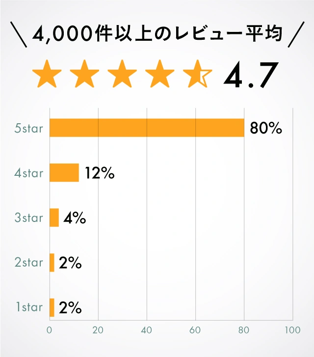 80%の人が5starを付けています。平均は4.7です。(2023年6月現在)