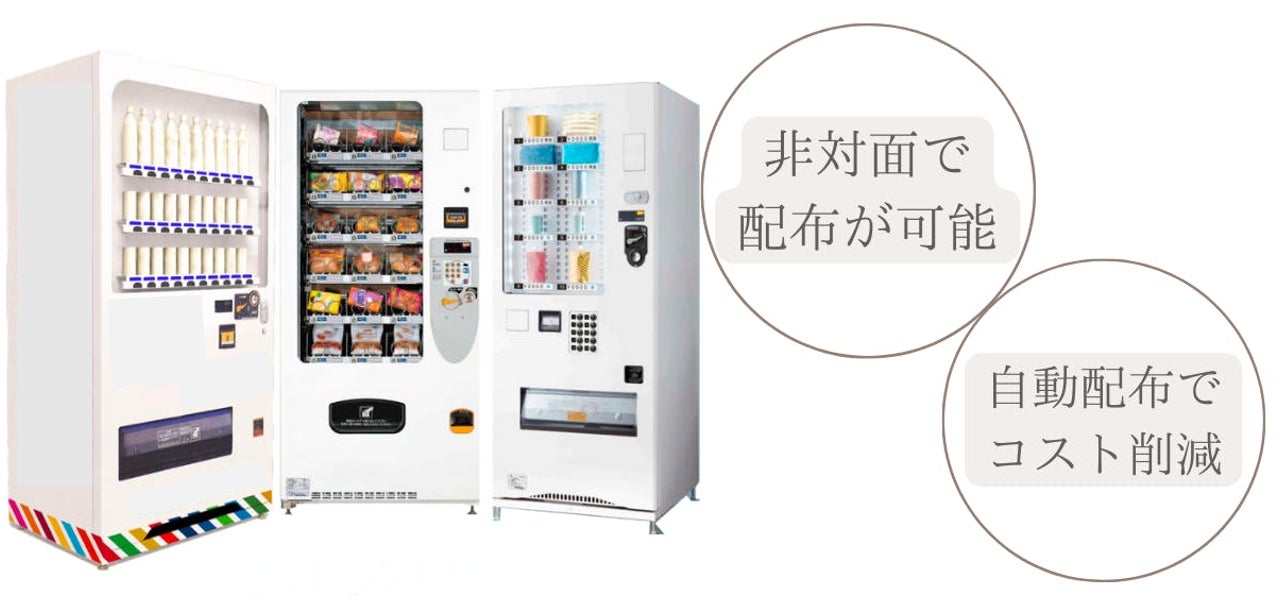 現在、設置してある自動販売機等を活用し、全国の教育機関に配給システムの導入を目指します。