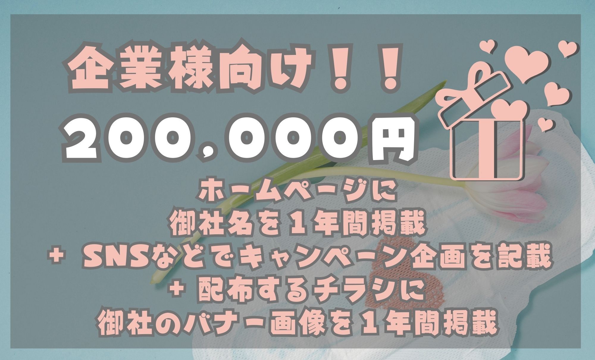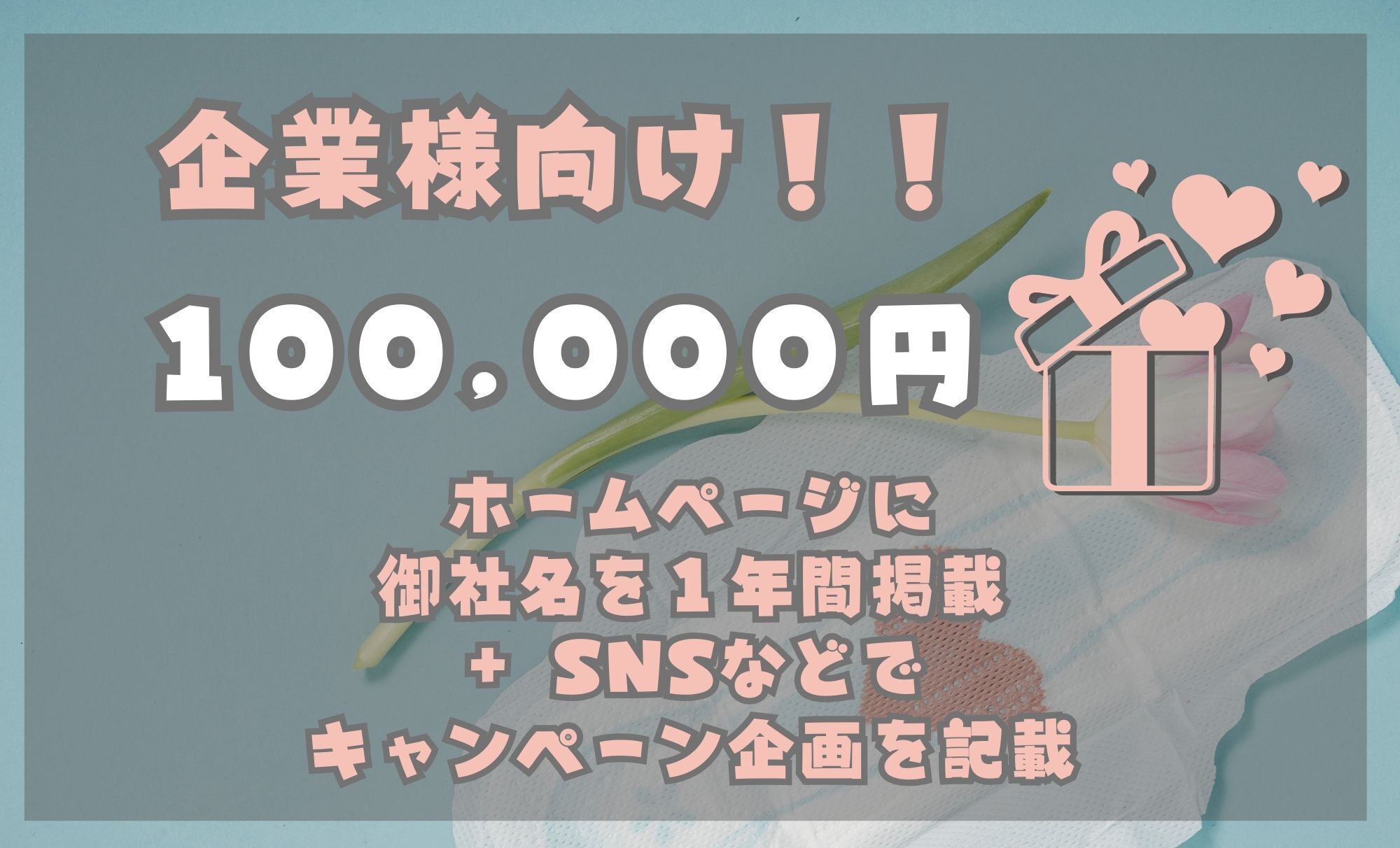 さらに、ご希望の場合、生理用品とともに配布するチラシに御社のバナー画像を1年間掲載
