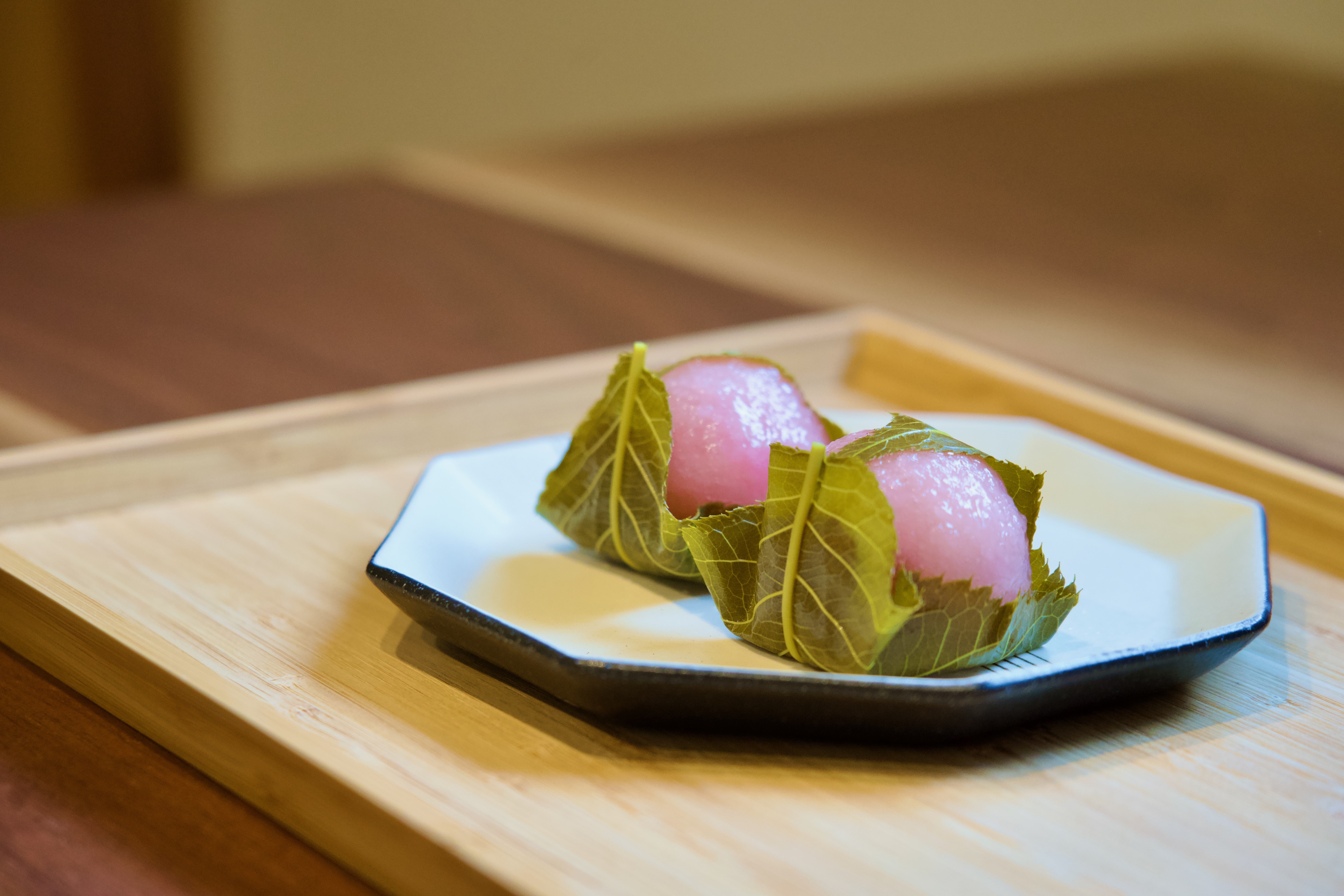 老舗和菓子屋さん春の名物、いちご桜餅。