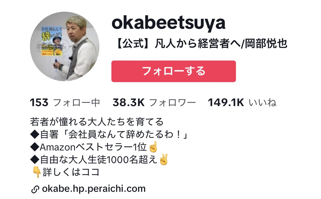 私は、15年前に勤めていた会社がいきなり倒産するという事態に見舞われました。それまで起業するとは微塵も考えていませんでしたが、この機会に、時間とお金を自由に使える世界を目指してみようと未経験ながら起業し、現在ではフォロワー3.8万人のビジネス系TikTokerとしても活動しています。