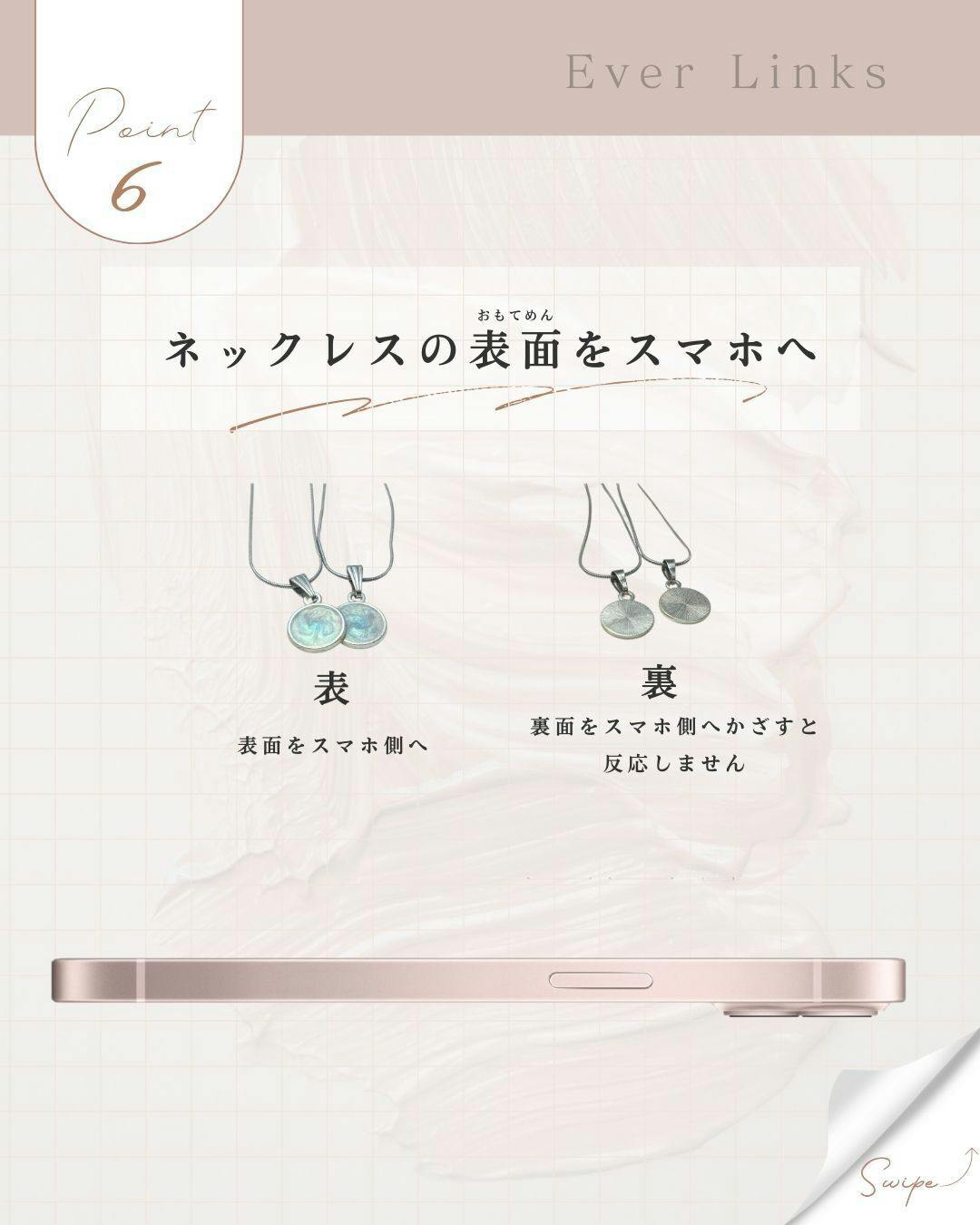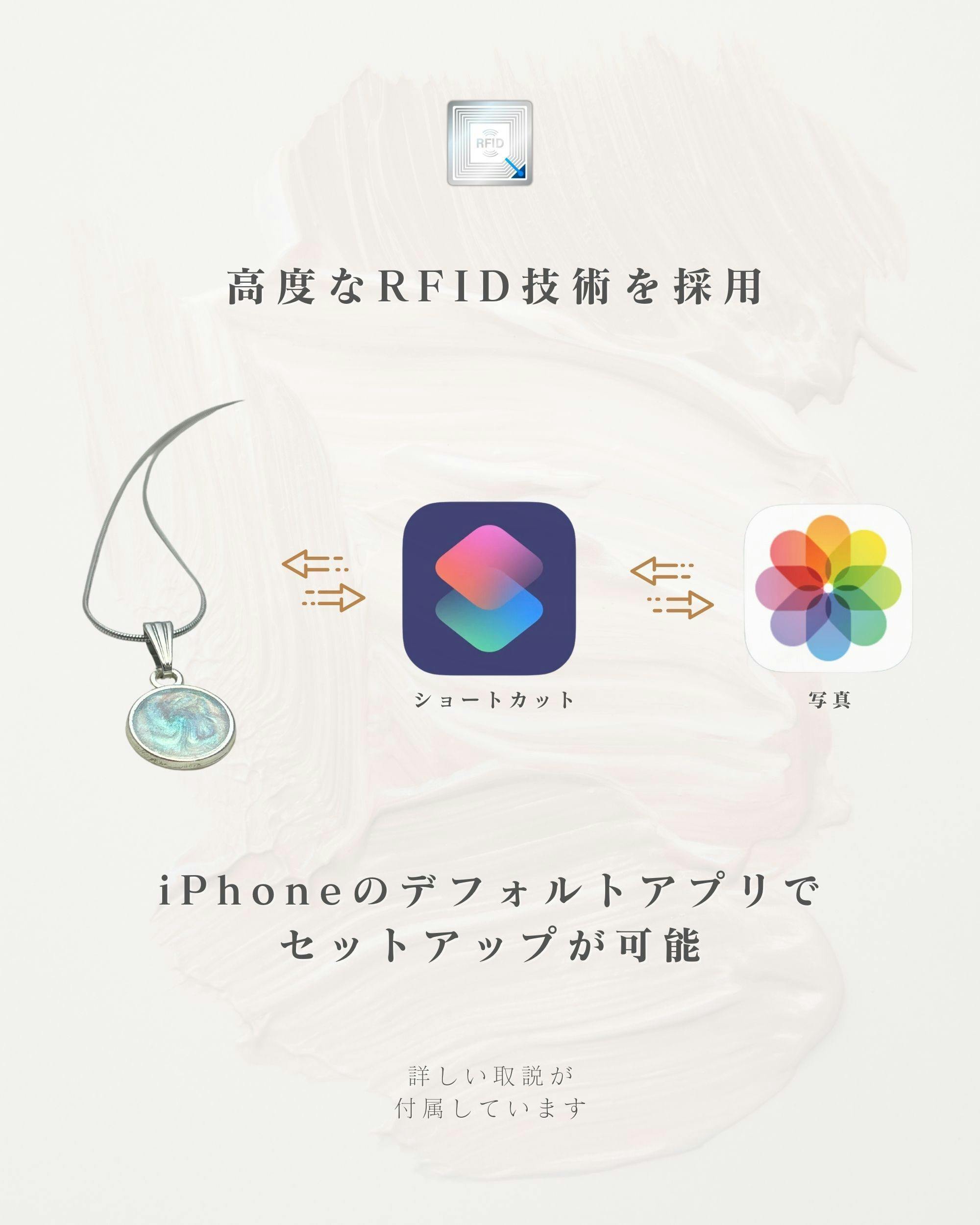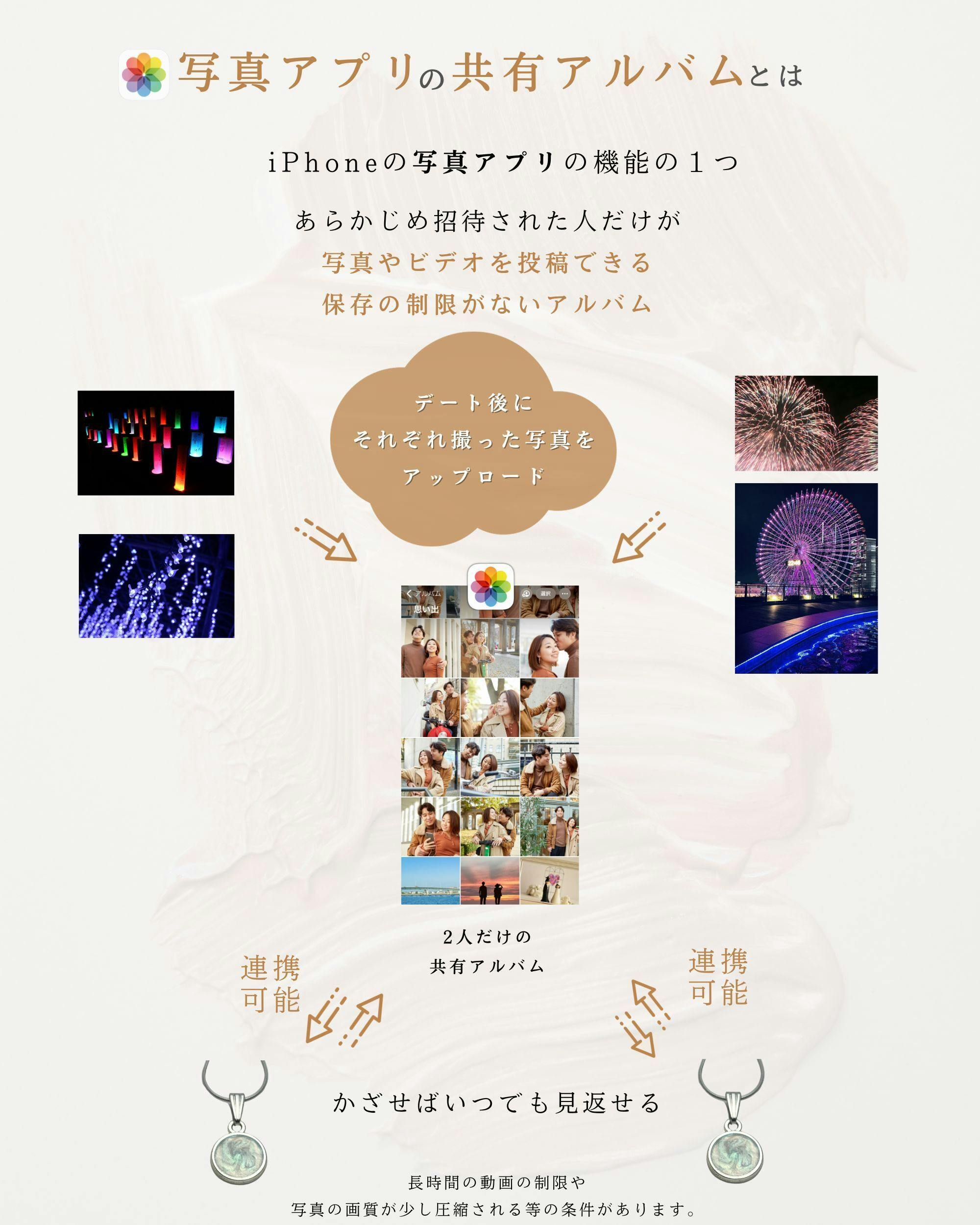 ネックレスにスマホの上部をかざすと、写真アプリの共有アルバムを開くことができます。