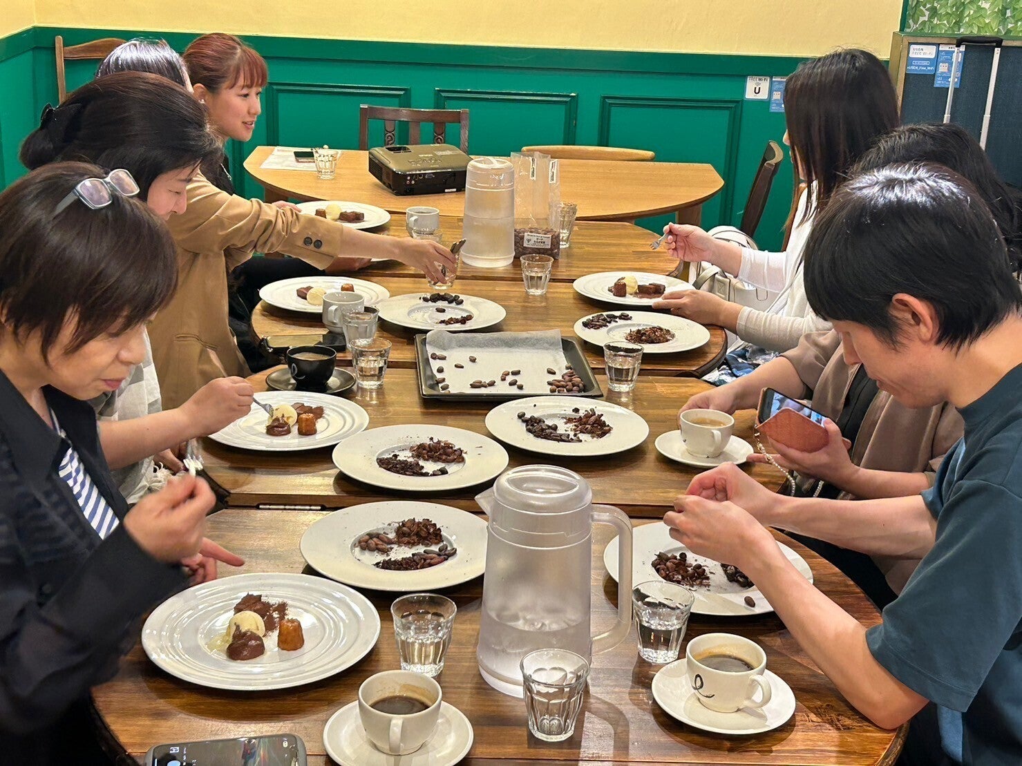 2023/11/21 19:07昨日は生チョコと殻剥き体験会を開催しました!剥いたカカオと殻をサラダやお肉にかけたり、蜂蜜漬けにしてハニートーストで食べていただきました!生チョコを使って、パフェ作りが盛り上がり楽しい体験会になりました。こども食堂を経営している人や、歌と体操を合わせて高齢者の脳トレをしている方と繋がり、来年体験会をする事が決まりました!また、報告させていただきます! もっと見るコーヒーの焙煎会とチョコ作りイベント!
