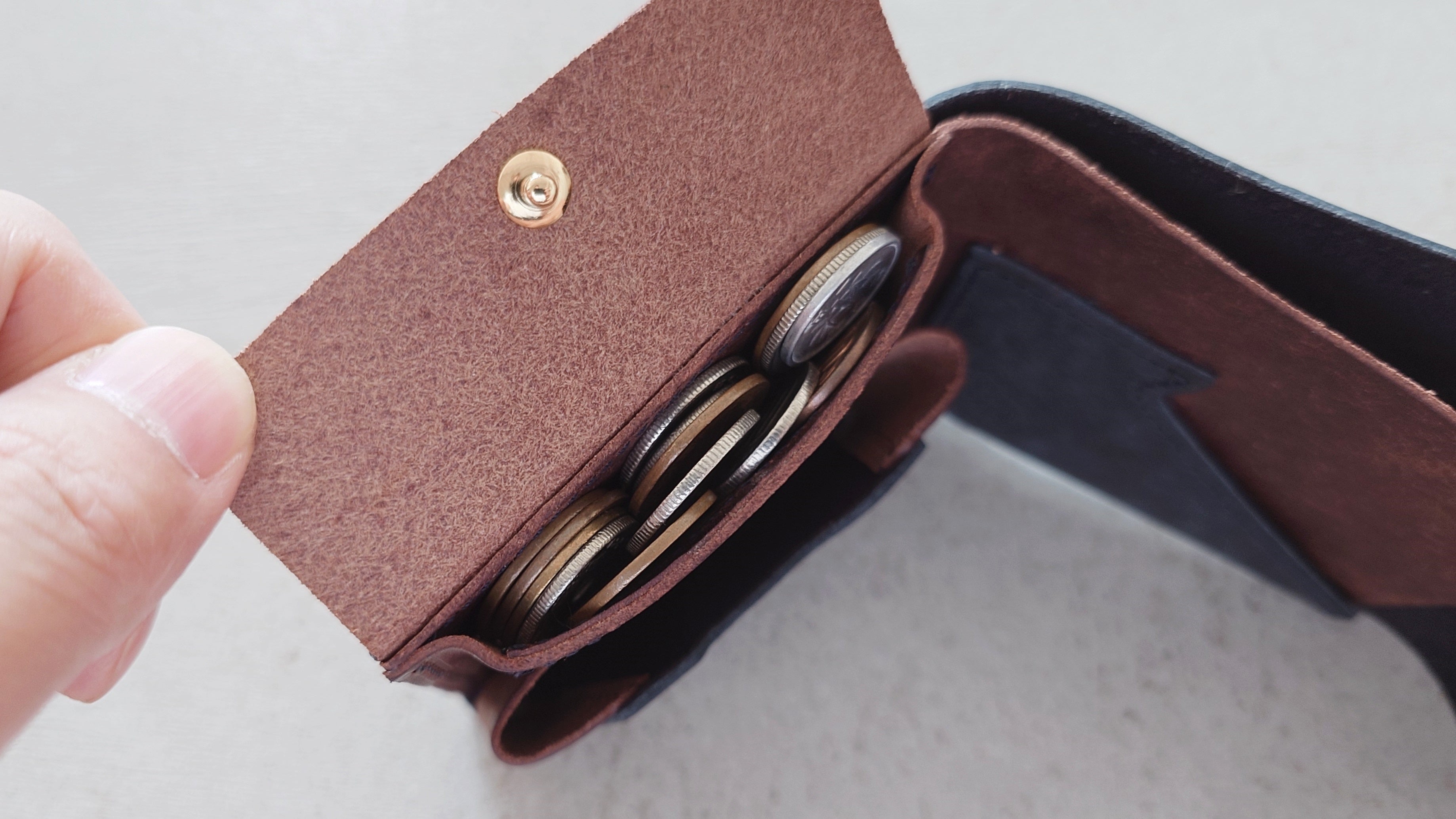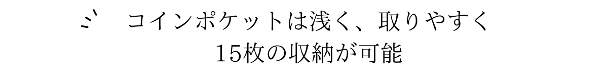 浅めのコインポケットで見えやすく、つまんで取り出しやすくしました。