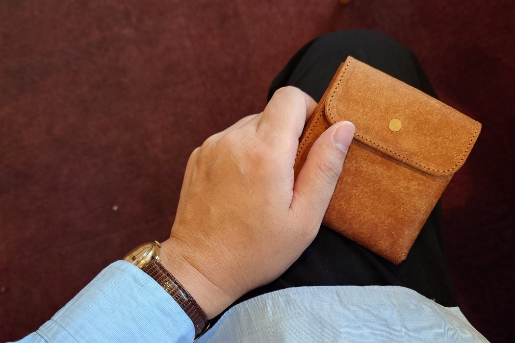 必要最低限に小さい小銭入れ、15枚の小銭の収納が可能なミニマムなデザイン