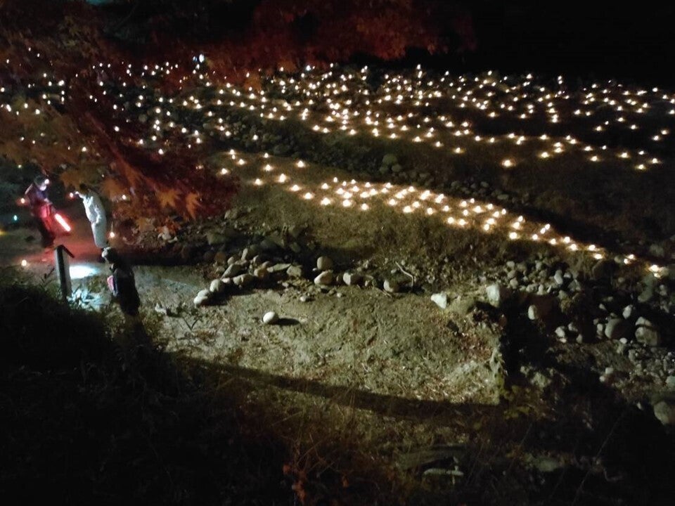 例えば、香嵐渓もみじまつりのイベント「願掛けろうそく」は、地元住民の方々がボランティアとして参加し、川岸に約1,000個のろうそくを並べたりろうそくの販売を行ったりしています。