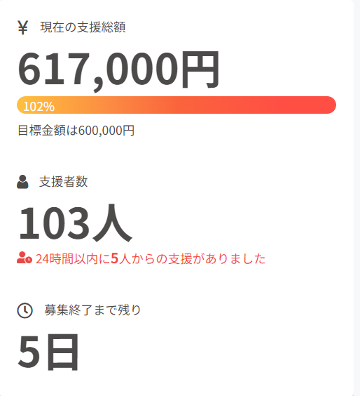 残りの期間最後まで全力で支援募集しようと思っています!