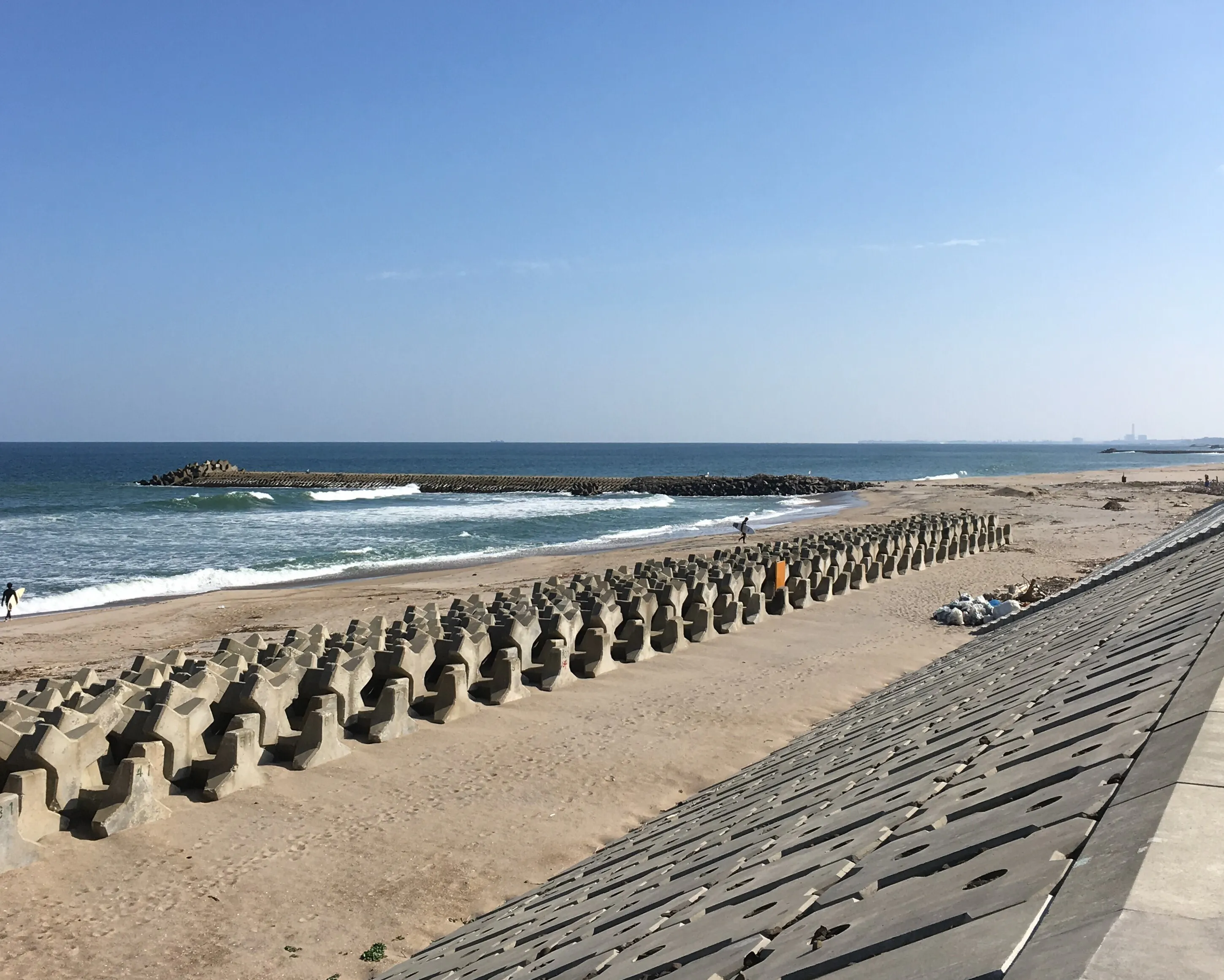 1月の快晴の阿武隈川の河口で「太平洋」の波を見て、
