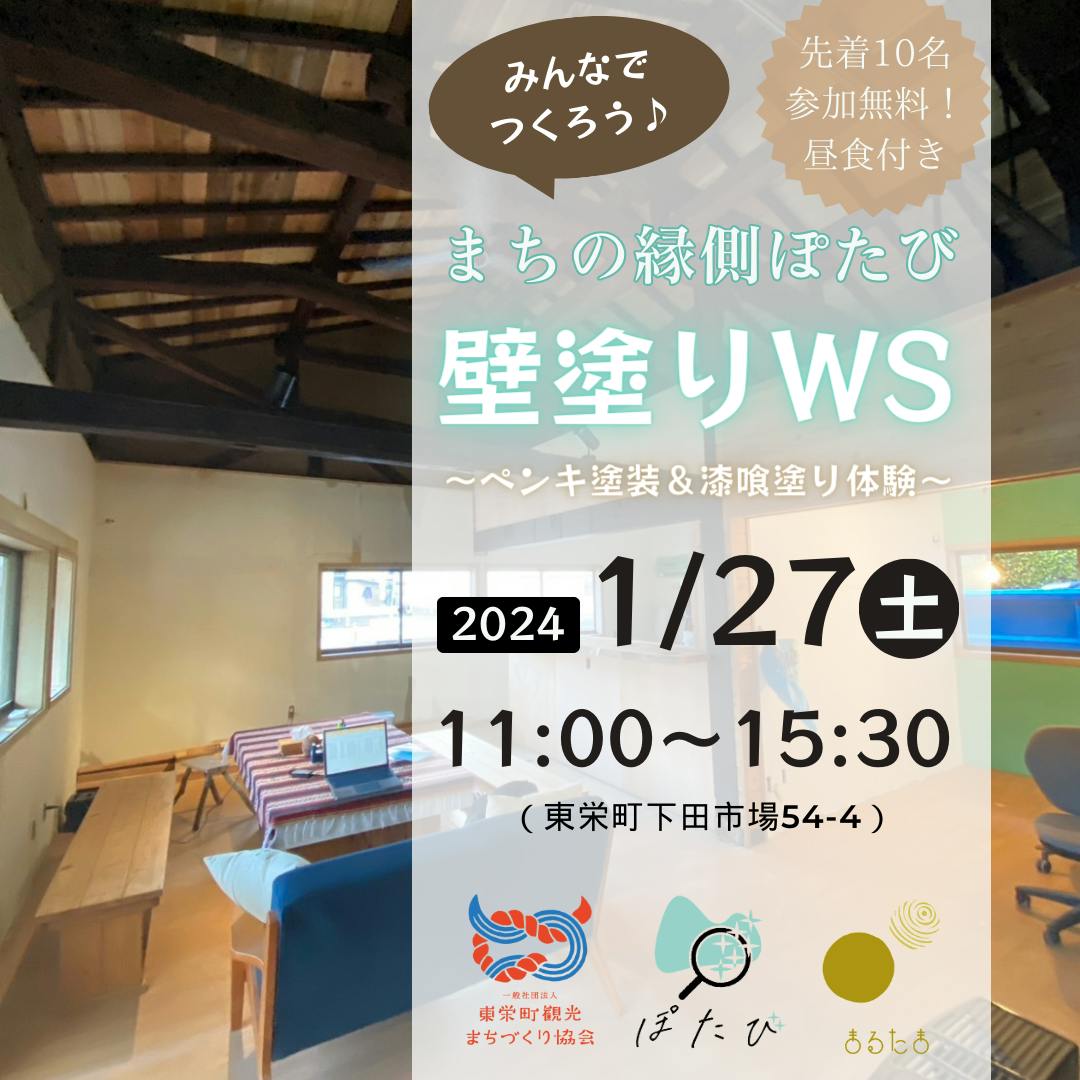 1月27日(土)に「まちの縁側ぽたび」にて、みんなで壁塗り作業をするイベントを開催することになりました。