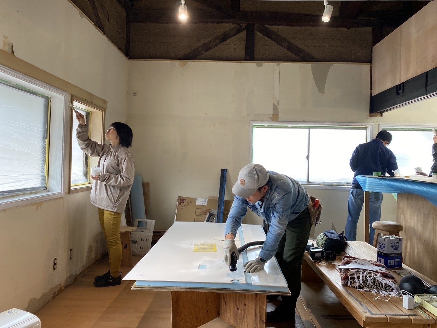 今日も改装工事で壁の塗装などを進めているさなか!