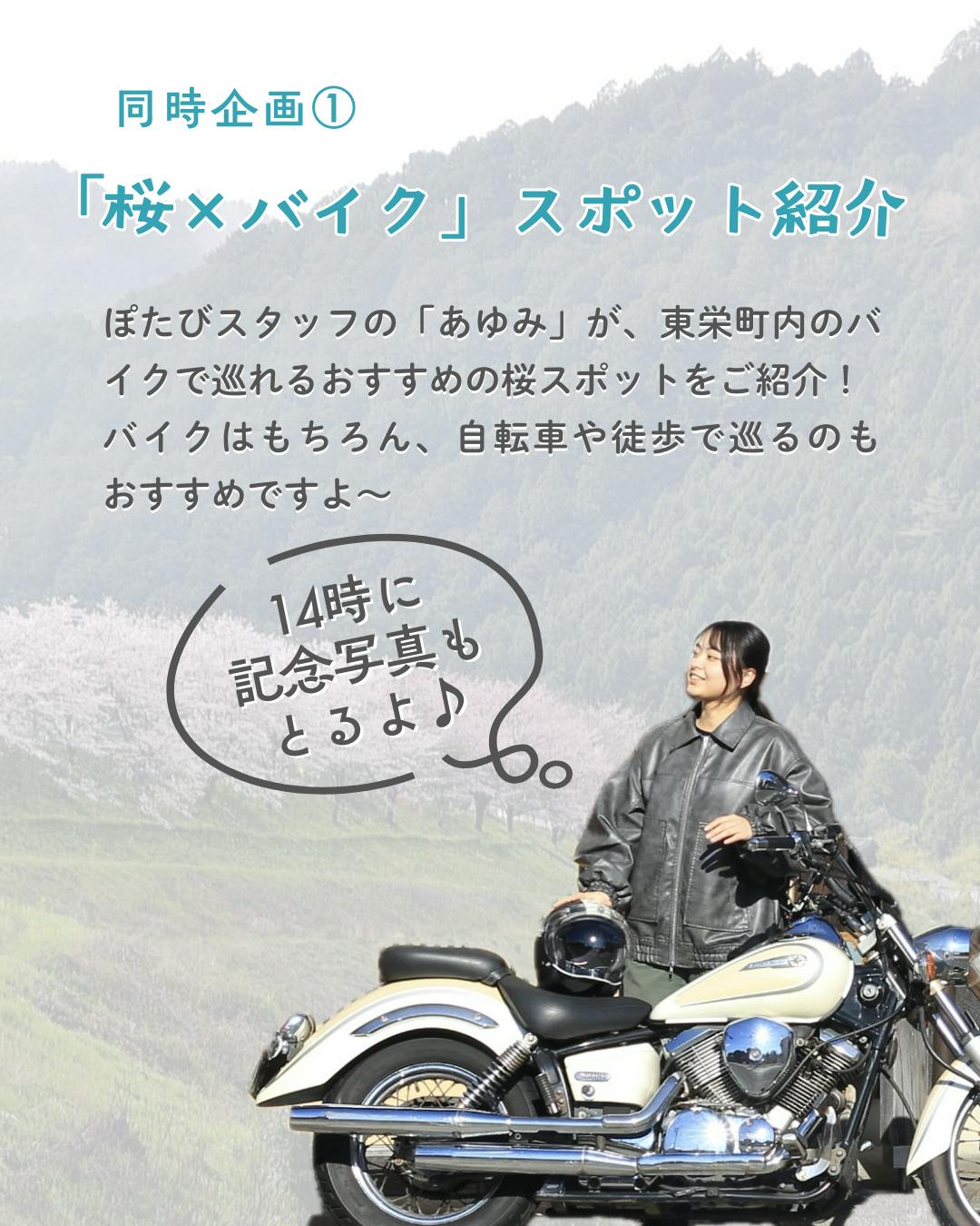 スタッフのあゆみがバイクで巡れる町内の桜スポットをご紹介します。
