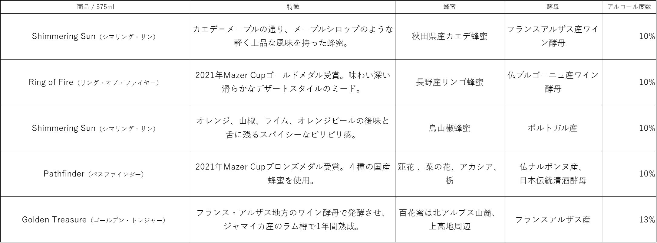 ミード単体でお飲みいただければ、何万ものミツバチが集めた蜂蜜の風味、そこに込められた養蜂家の想い、そして自然の木々の風味を存分に感じられるでしょう。また、上質な白ワインのように、食事とも一緒にお楽しみいただけます。リンゴ、サーモングリル、ベーコン、チーズなどに合い、カエデが美しく燃え上がる秋の季節にぴったりのお酒となっています。