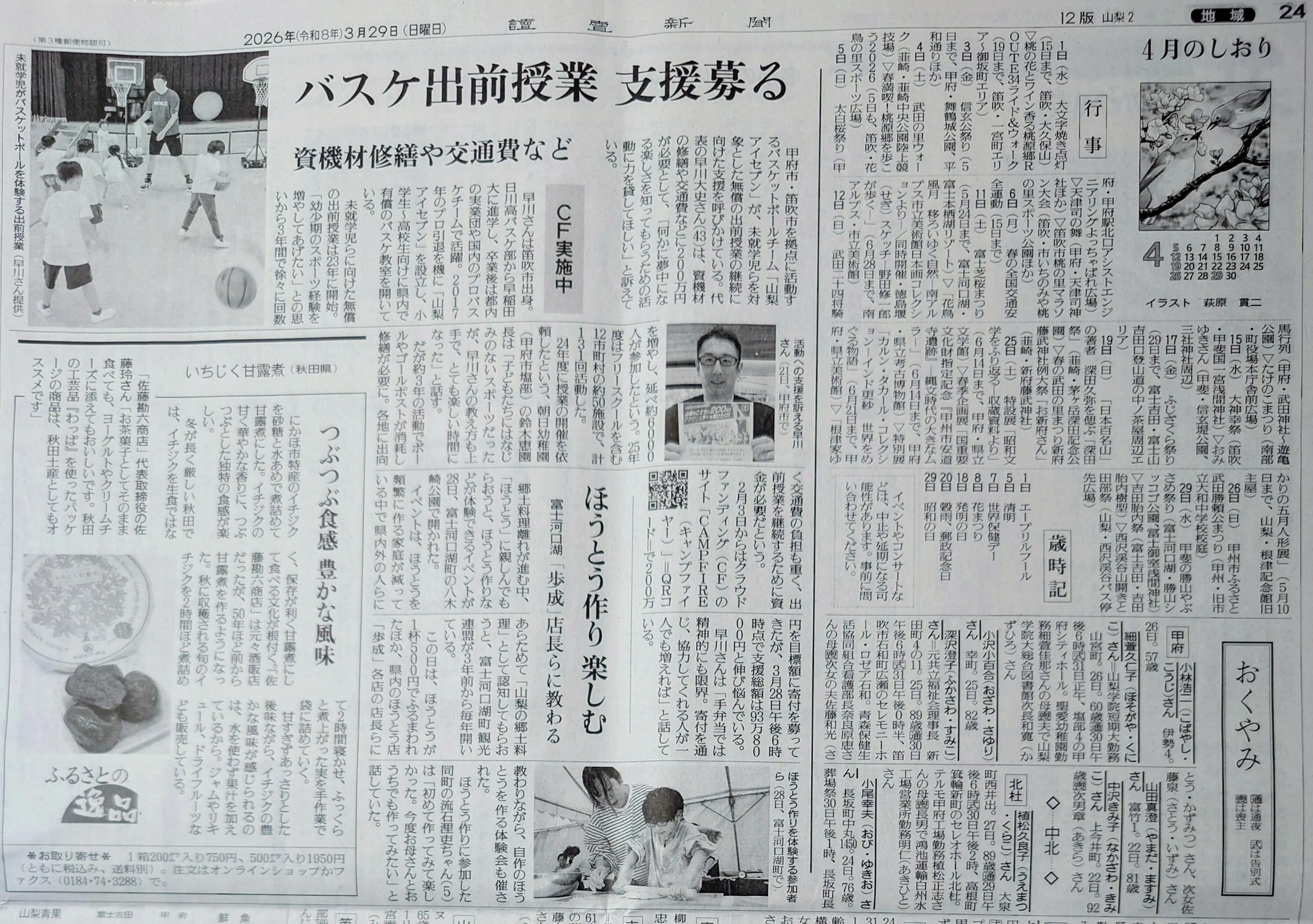 2026/04/02 22:01過去のプロジェクトからずっと応援してくださっている皆様、 そして今回、新たに仲間になってくださった皆様。こんにちは、子どものためのクラウドファンディング・プロジェクトオーナー、トルネードアカデミー 山梨アイセブンの早川大史(だいちゃん)です。連日、プロジェクトへのご支援、本当にありがとうございます。あの時(第1〜4回クラファン)のご支援があったから、今のアイセブンがあり、今回のアイセブンキャンバスの200回挑戦にたどり着けました。今日は、少しだけ「だいちゃん」ではなく、一人の「山梨に命を懸ける男」として、生々しい話をさせてください。2026年3月29日(日)付、讀賣新聞(読売新聞、よみうり)さんの朝刊に、私たちが命を懸けて続けてきた活動を、これほど大きく、客観的な事実として取り上げていただきました。讀賣新聞さん、心より感謝申し上げます。■バスケ出前授業 支援募る山梨県を拠点に活動するバスケットボールチーム「山梨アイセブン」が、未就学児たちを対象にした無料出張バスケ事業《アイセブンキャンバス》の継続に向けた支援を呼びかけている。代表の早川大史さん(43)は、資機材の修繕や交通費、人件費などに200万円が必要として、「何かに夢中になる楽しさを知ってもらうための活動に力を貸してほしい」と訴えている。未就学児に向けた無料の出張バスケ事業《アイセブンキャンバス》は23年に開始。「山梨県の幼少期のスポーツ経験を増やしたい」との思いから、3年間で延べ6,000名以上が参加。2025年度は12市町村の63園で合計139回開催した。24年度に開催した朝日幼稚園の鈴木恵園長先生は「子どもたちには馴染みのないスポーツだったが、早川さんの教え方も上手で、とても楽しい時間になった」と話す。だが3年間で約400回の活動により機材が消耗し、各地に出向く交通費の負担も重く、事業継続のための資金が必要だ。2月3日から目標200万円で寄付を募ってきたが、現時点で支援総額は半分にも満たず、伸び悩んでいる。早川さんは「自費だけでは経済的にも精神的にも限界が来てしまっている。寄付を通じて、一緒にこの活動をしてくださる人が一人でも増えていただきたい」と話している。(讀賣新聞より抜粋、取材時はちょっと前です)■「いい活動だね」という言葉が、実は一番怖いこの記事は、僕たちの歩みが社会に認められた、最高に嬉しい証です。しかし、新聞を閉じた時、僕は猛烈な恐怖に襲われました。「あぁ、良いことやってるね」「頑張って」その言葉だけで終わってしまうことが、今の僕にとって一番の恐怖です。なぜなら、その一言の裏側で、私たちの活動の心臓部は今、止まりかけているからです。嬉しいはずの言葉を、今は素直に受け取れなくなってしまっている。それほどまでに、僕は追い詰められています。■ 年間139回、想像してください「3日に1回」のボランティア活動昨年度、僕は139回出張しました。平均すると「3日に1回」。資機材を積み込み、山梨中を走り回る。この頻度を超えたあたりから、正直に言えば、体も心も、そして数百万円を投じてきた貯金も、限界の境界線を超えました。それでも「無料」に固執するのは、家庭の経済状況や生まれた地域で、子どもたちの「夢中になれるチャンス」に格差をつけたくないからです。山梨のどの子にも、等しく「バスケって楽しい!」と目を輝かせる権利がある。それを守るのが、プロの世界を見てきた僕の役割だと信じて、身を削り続けてきました。■ 「あと1%、14,000円」で、景色が変わります現在、支援総額は98万円を超えました。62名の熱い「同士」が、文字通り僕の背中を支えてくださっています。目標達成まで、あと半分。そして、プロジェクトの大きな節目である50%(100万円)の到達まで、あとわずか14,000円です。この14,000円、そして皆様からのご支援は、具体的にこう変わります。・あと25,000円あれば:ボロボロになったゴールを、1年間戦える新品に新調できます。・あと50,000円あれば:全てのボールを、子どもたちが最高の感触で掴める新品に入れ替えられます。■ 明日、4月3日(金)FM KOFU(FM甲府)に生出演しますこの想いを、公共の電波でも直接お届けします。4月3日(金)FM KOFU(FM甲府)リニューアルスタート「スポチャン!763」14:10頃〜「スポチャン!ヒーローインタビュー」コーナーインターネットでも聴けます:https://www.fm-kofu.co.jp/今の僕の「声」を聴いてください。■ 山梨の未来を守る「同士」になってください山梨の未来を誰が決めるのか?それは神様でも、運でも、他の誰でもありません。今、この文章を読んでくださっている「あなた」と「僕」です。子どもたちが新しいボールを追いかけ、目を輝かせる景色を、山梨に当たり前に残したい。僕と一緒に、山梨の未来を守る「同士」になってください。残された時間は、3週間。今日、この瞬間のあなたの「一歩」が、山梨の未来を動かします。お力を貸してください。よろしくお願いいたします!▼【現