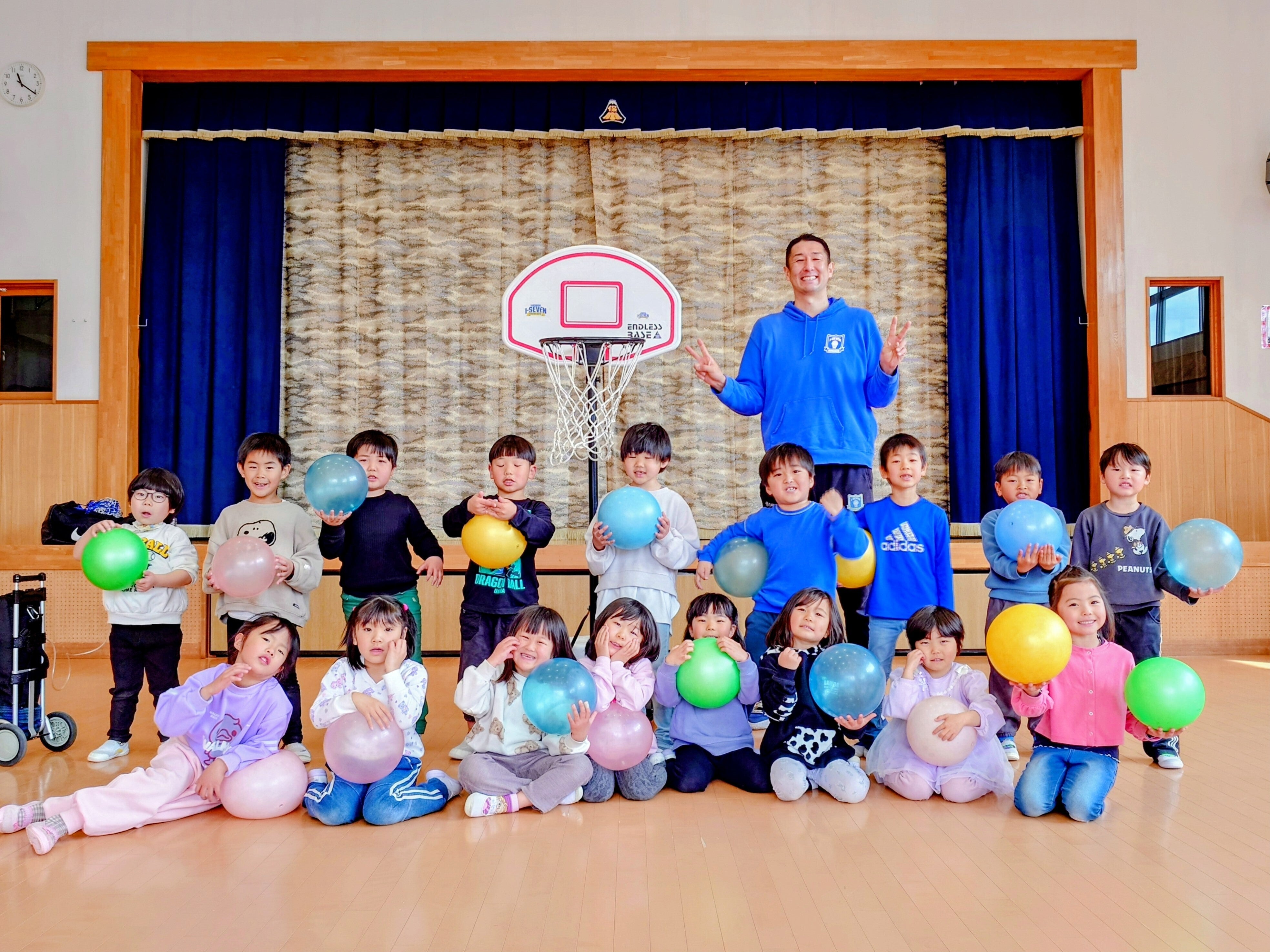 バスケ関係のB3P渡邉克正さんと流石良一さんからのご紹介でご縁で繋がった忍野村!年中さん・年長さんの26名の忍野の子どもたちの瞳の輝きに、僕自身がパワーをもらいました。