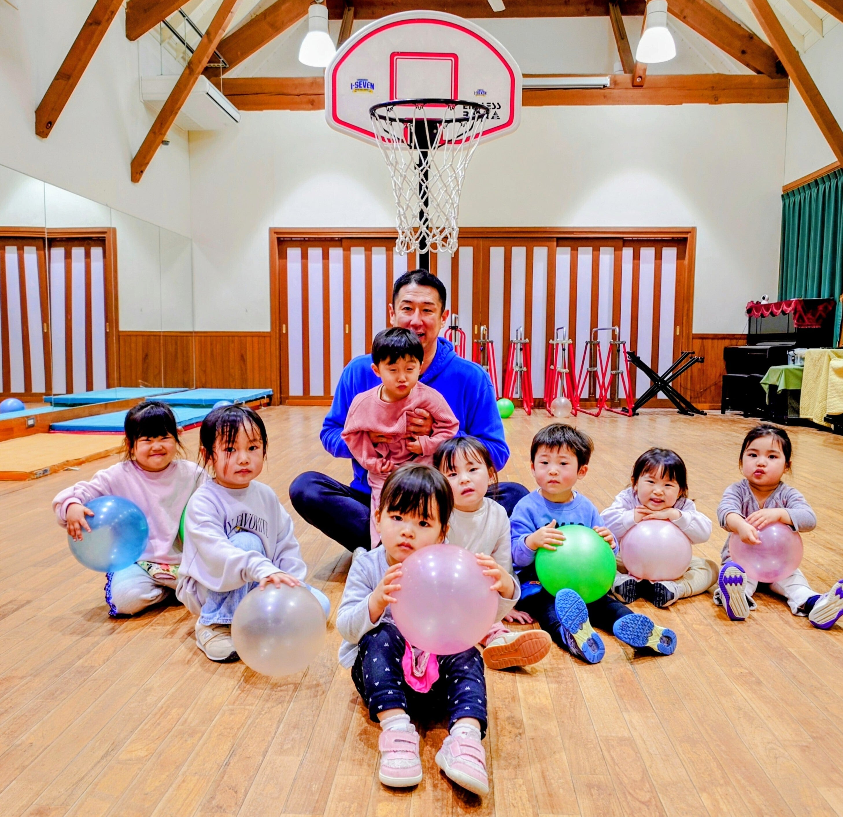 園内で任意に選べる課外教室として、山梨県初・未就学児専用のバスケ教室《アイセブンわくわく宮前こども園校》が開校したのです。