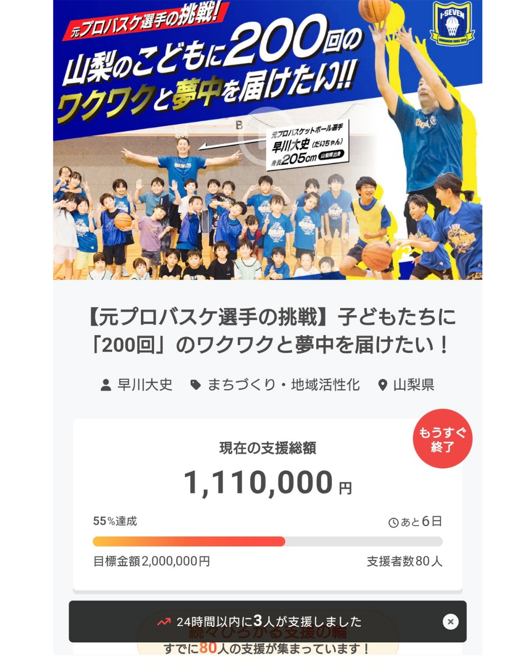 アイセブンキャンバス(保育園・幼稚園・こども園・フリースクール等出張バスケットボール事業)の子どもたちの挑戦の場を守りたい!
