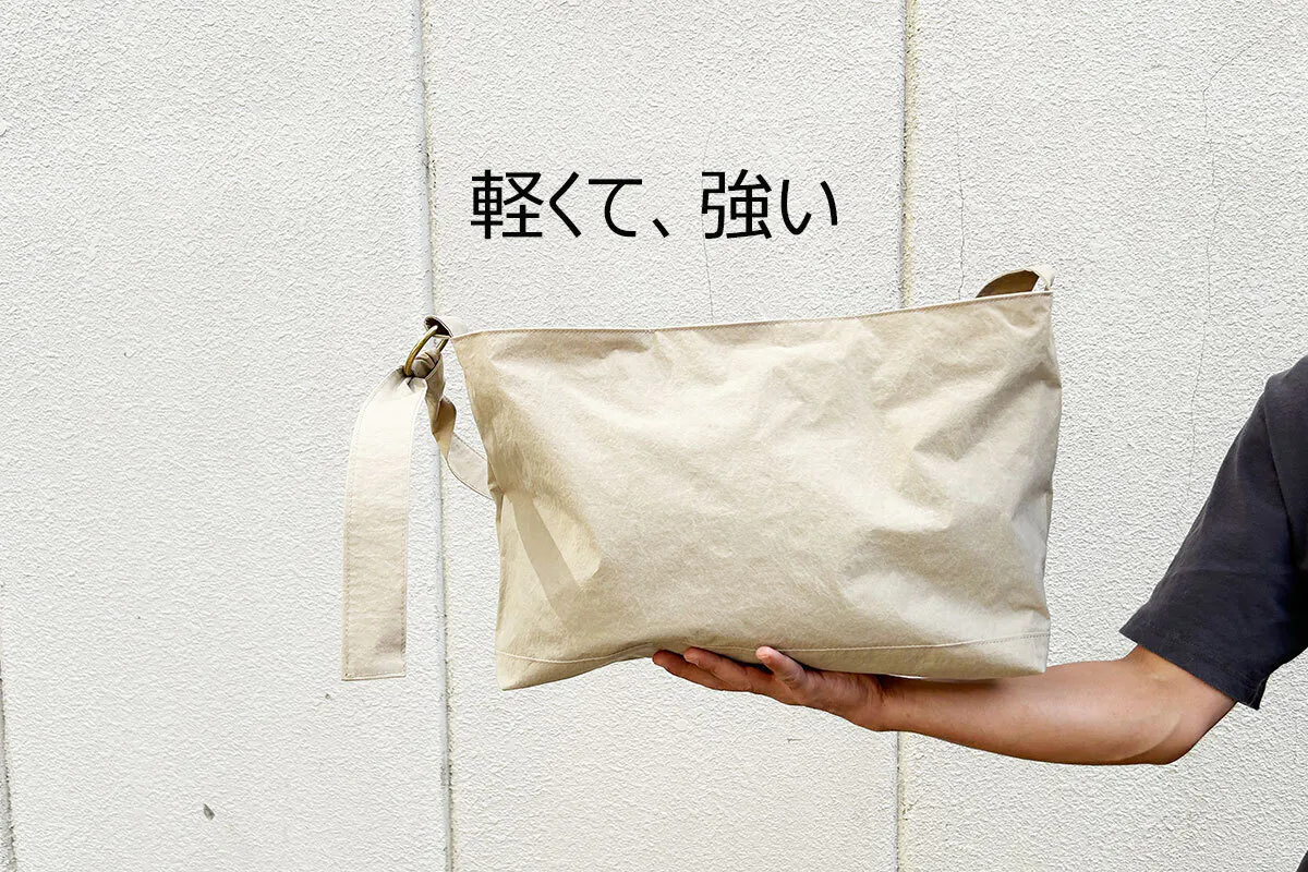 軽いのに、特殊加工技術により糸の強度があるので、帆布のような毛羽立ちはほとんどなく、購入したときの味わいを長く楽しめます。引き裂き強度も帆布やレザーと比べても遜色なく、破れたり穴が開いたりしにくい強さも魅力です。