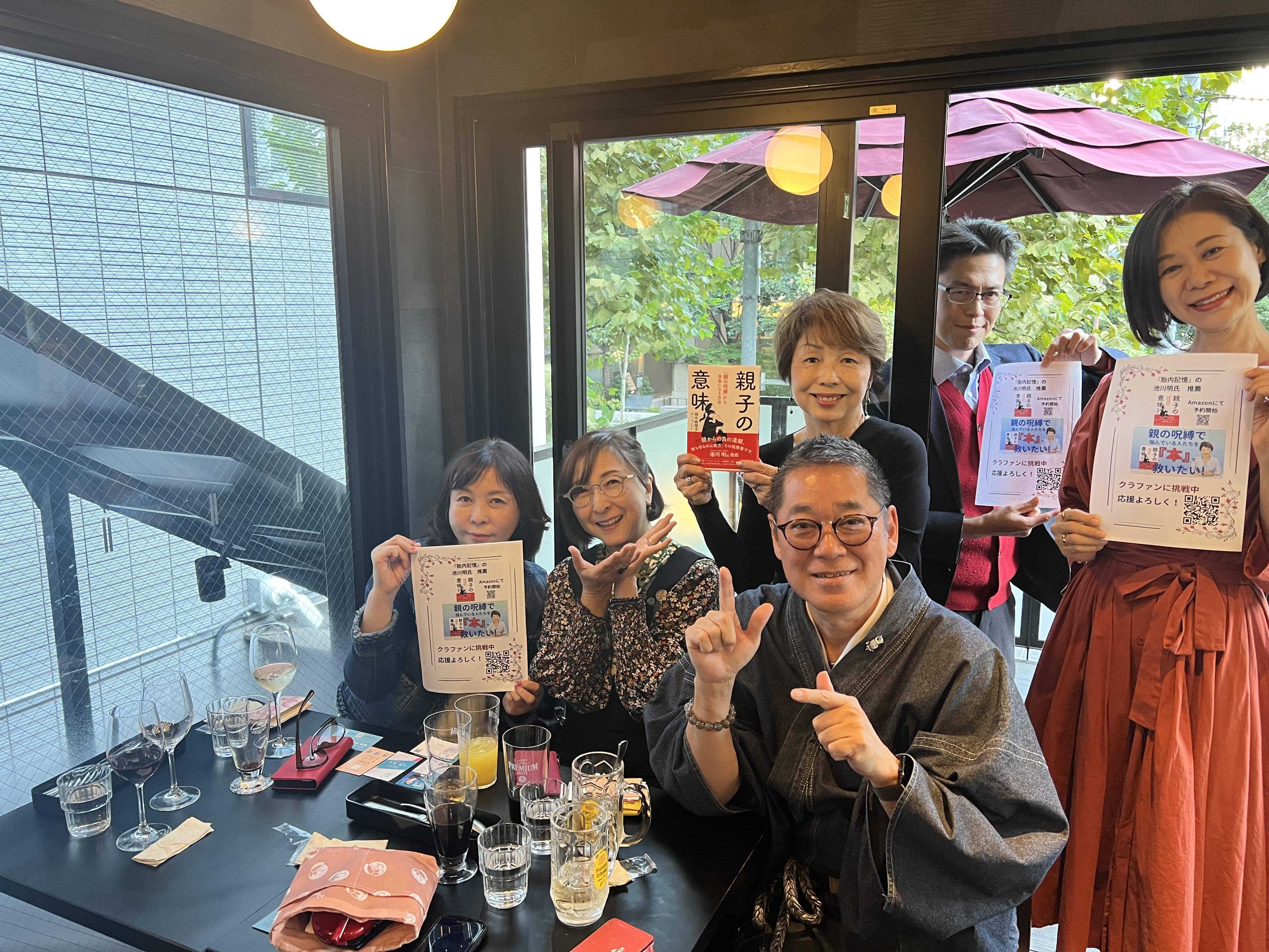 一冊の本その中に込めた思いをこのクラウドファンディングを通して発信して本当に良かった!畑中映理子です。最初は、緊張とプレッシャーでいっぱいだったのですが応援をしてくださる方が、さらにはまた声を大きくして次なるお知り合いに繋げてくださるようになってきました!今日はなんと、沖縄在住の(和の心コーチング)の稲泉誠さんが東京にお越しになりました。稲泉さんは、オンラインで知り合ったのですが即座に私の思いに共感していただきご支援をくださった方です。東京で開催された稲泉さんの交流会に参加させていただきリアルでお会いすることができました!そして、その場にいらした方々に私の本のこと、クラファンのことをシェアしてくださいました!心からの応援・・なんと心地よいものか!受け取っていきたいと思います。ご支援いただいた愛をしっかり受け止めさらに、私も人の応援をさらにして参りたいと思います。沢山の愛に溢れた思いをありがとうございます。畑中映理子 拝