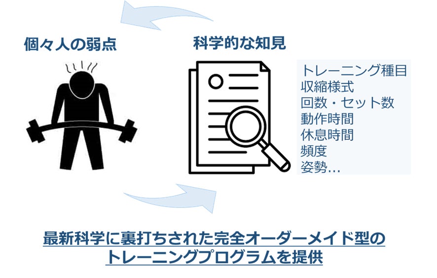 もしこの情報を正確に得ることができれば、弱点に特化した効率的なトレーニングプログラムを設計し、目的達成に効率的に近づくことができます。