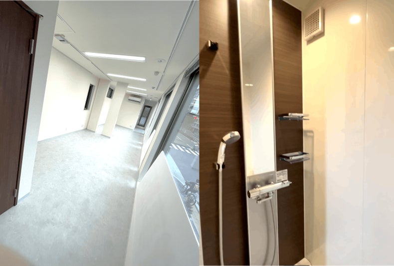 トイレ・シャワー完備、烏丸が一望できる清潔感のある内装です。